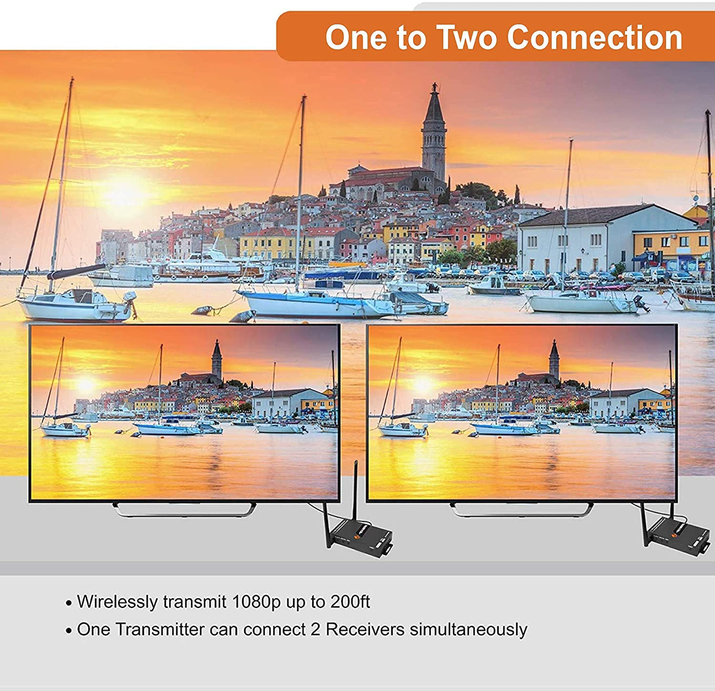 J Tech Digital Wireless Hdmi Extender 1X2 Up To 200Ft 1080P With Hdmi Loop Output Ir Passthrough (1Tx + 1Rx)