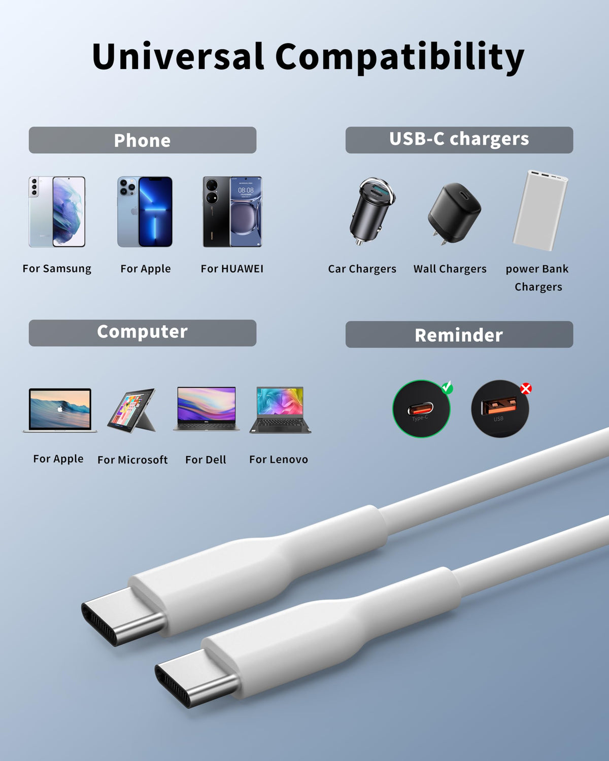 Usb C Charger Cable Usb C To Usb C Cable(2Pack, 6Ft, 60W/3A)For Iphone 15 Charger Cable Fast Charging For Iphone 15 Pro Max Plus,Ipad Mini 6/ Pro 2021,Ipad Air 4,Macbook Pro 2020,Samsung Galaxy S23 Switch