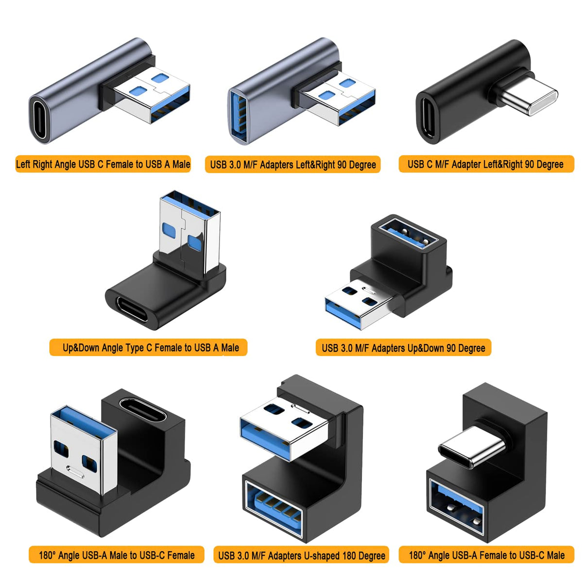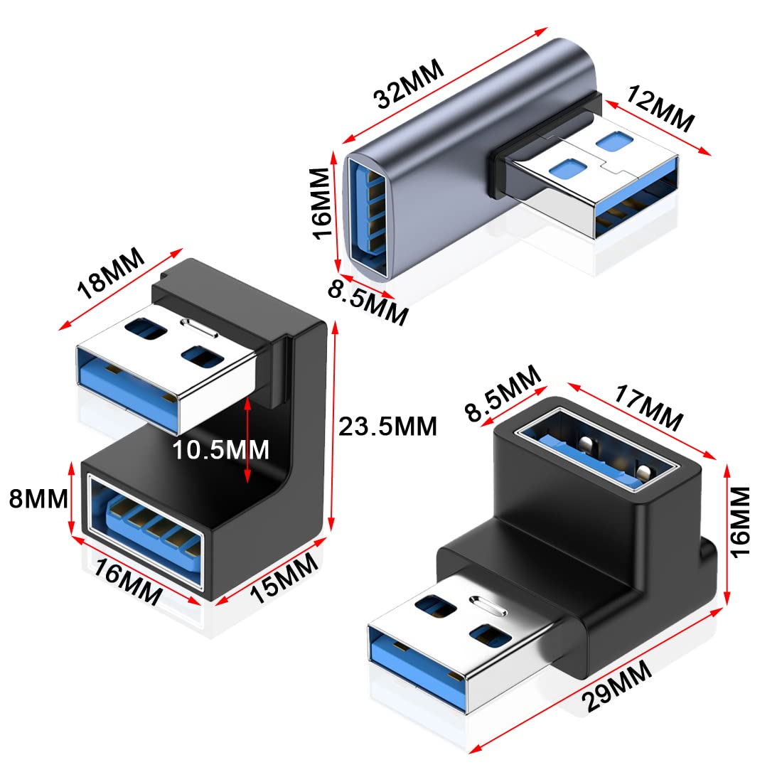 Jomihoney 90 Degree Usb 3.0 Adapter, Up & Down Left Angle / 180 Degree Usb A Male To Female Converter Extender, L/U Shape 10Gbps Data Transfer Usb Connector For Usb Devices