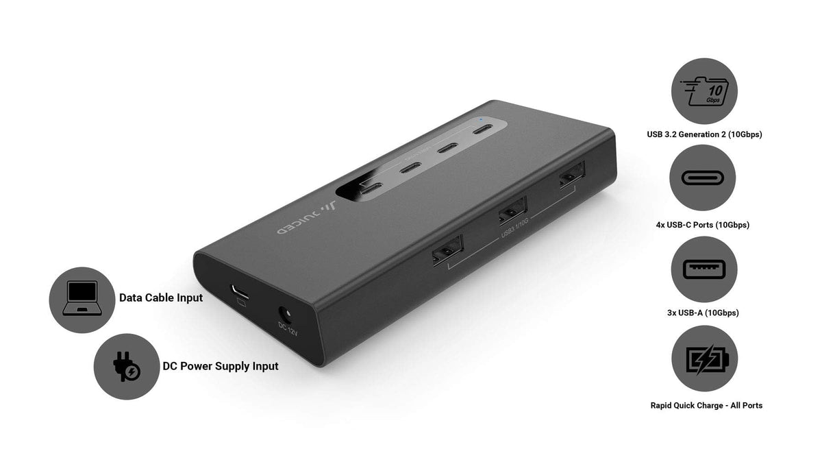 Juiced Systems Vertexhub High Speed Usb C & Usb A Hub 10 Gbps Transfer, Usb 3.2 Gen 2, 4X Usb C Ports, 3X Usb A Ports, Fast Charging