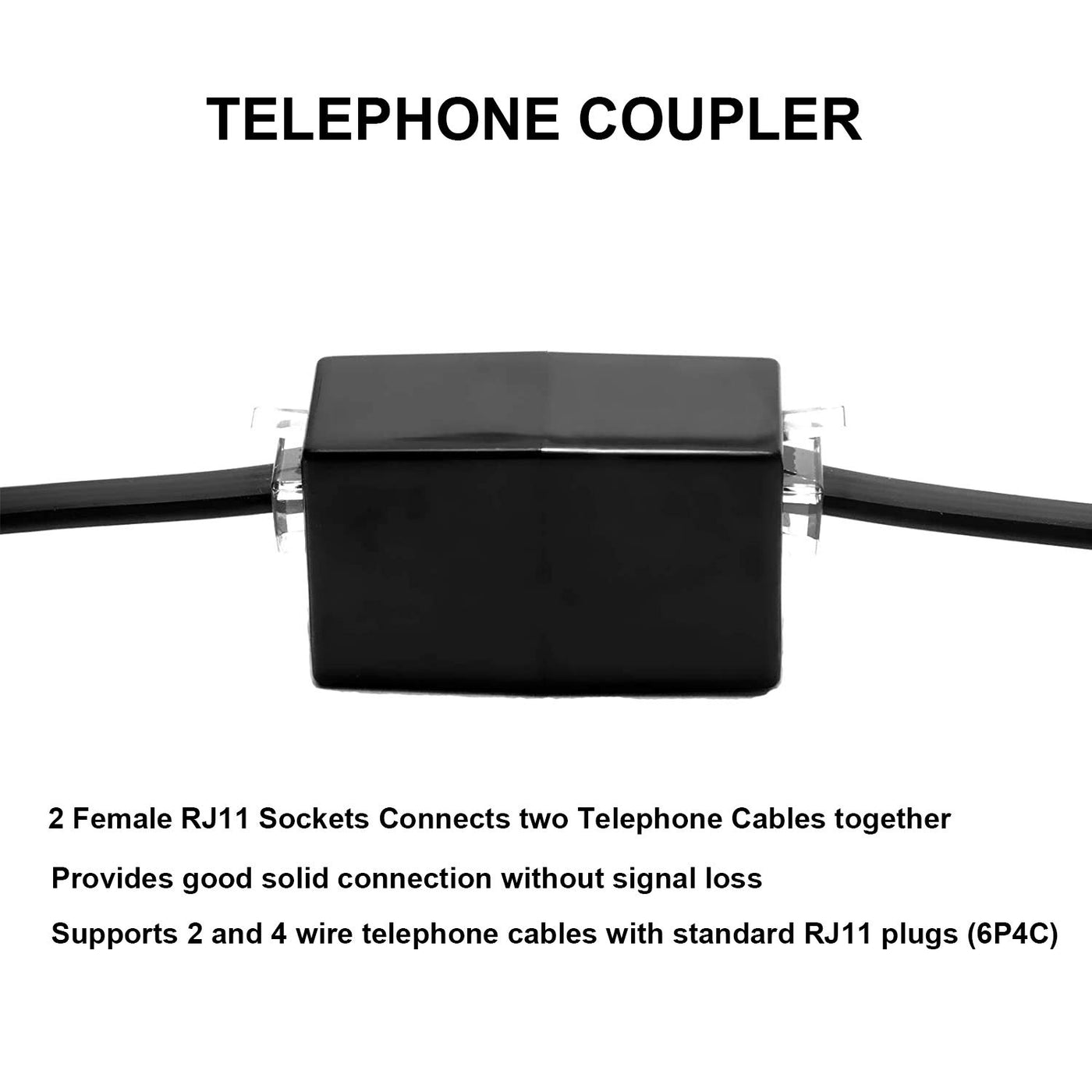 Kinxiyu Phone Cord 10Ft, Landline Telephone Cable With Rj11 Plug, Includes Telephone Inline Coupler Rj11 Splitter And 10Pcs Cable Clips(Black)