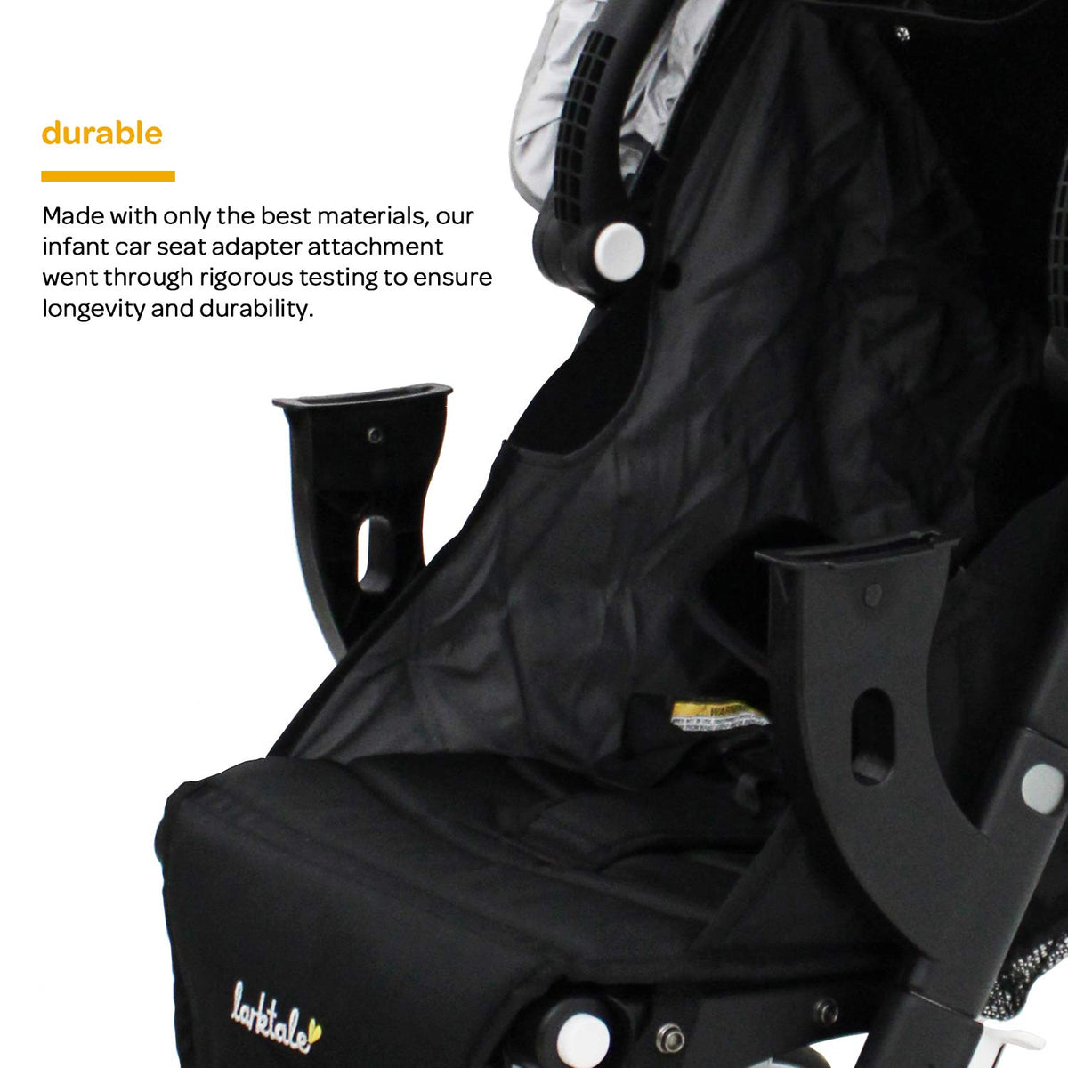 Q: What safety features does the Larktale Infant Car Seat Adapter provide?A: The Larktale Infant Car Seat Adapter is engineered for safety, ensuring a secure fit for compatible Britax infant car seats. Always ensure the adapter is properly installed before use and regularly check for wear and tear.