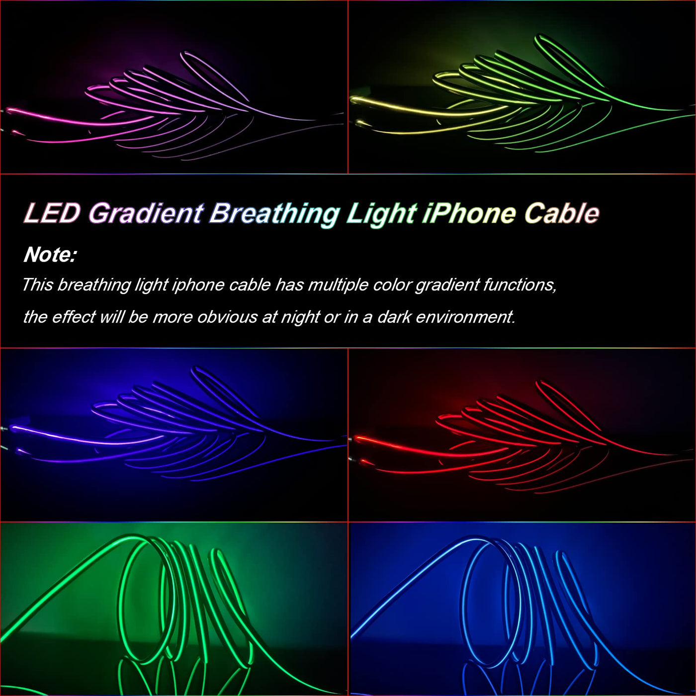 Led [Apple Mfi Certified] Iphone Charger, Led Breathing Light Lightning Cable Fast Charging Cord Compatible Iphone 14 Pro Max13/12/11 Pro Max/Mini/Xs Max/Xr/Xs/X/8/7/Plus Ipad Airpods 6Ft
