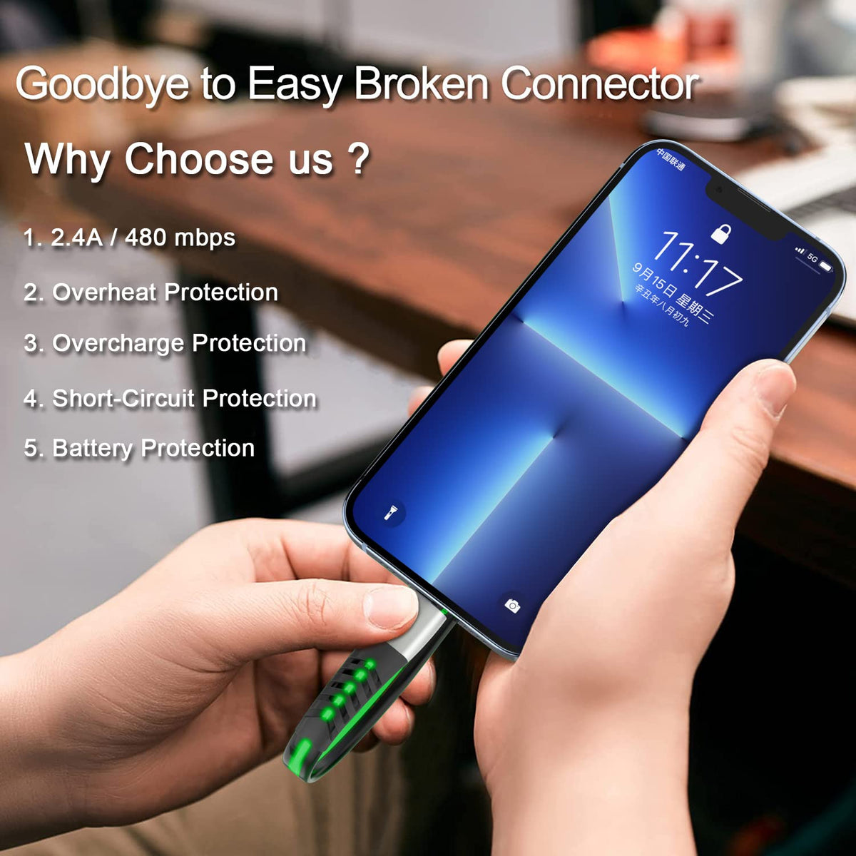 Led [Apple Mfi Certified] Iphone Charger, Led Breathing Light Lightning Cable Fast Charging Cord For Iphone 14 Pro Max13/12/11 P