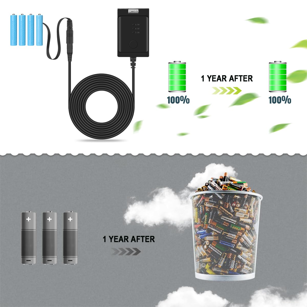 Lenink Adjustable Ac Power Supply Adapter For Aaa Batteries, 3V To 6V, Battery Replacement Adapter (Black)