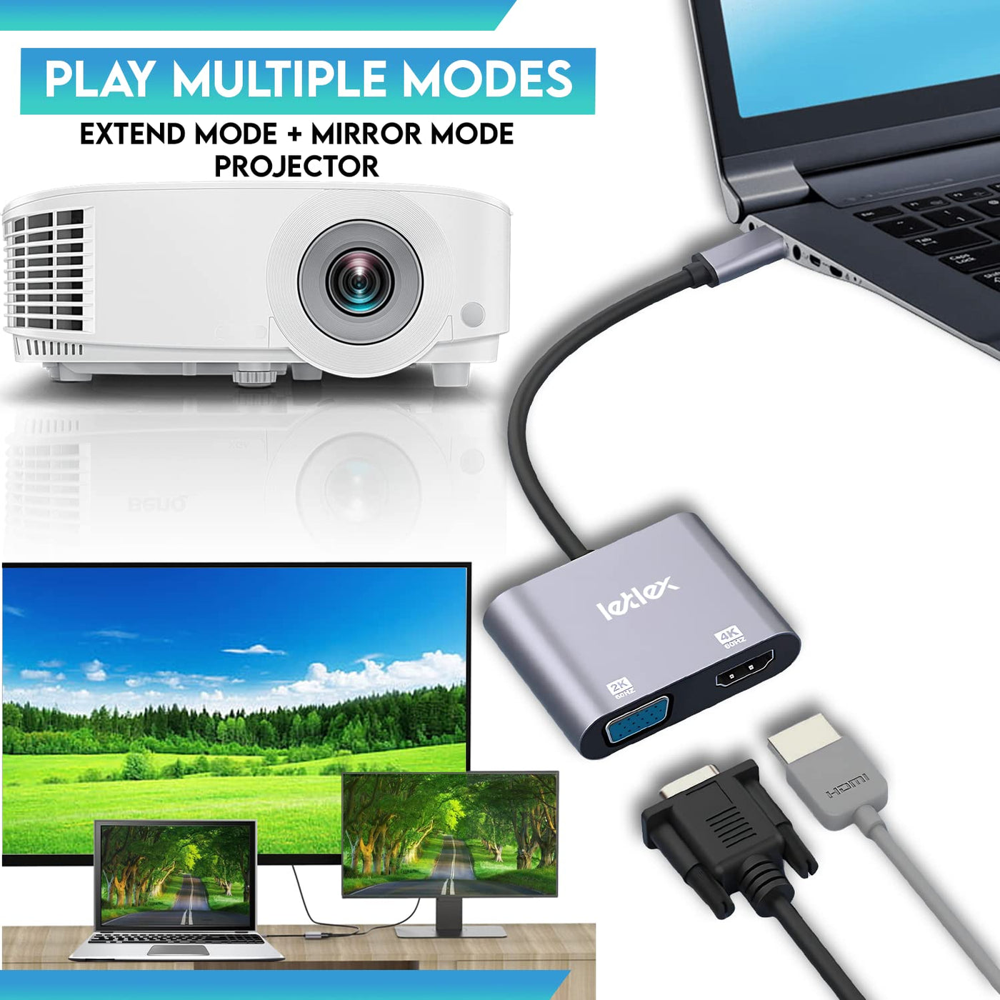 Letlex Usb C To Vga/Hdmi Adapter, Supports 4K@60Hz, Simple Plug & Play, Wide Compatibility