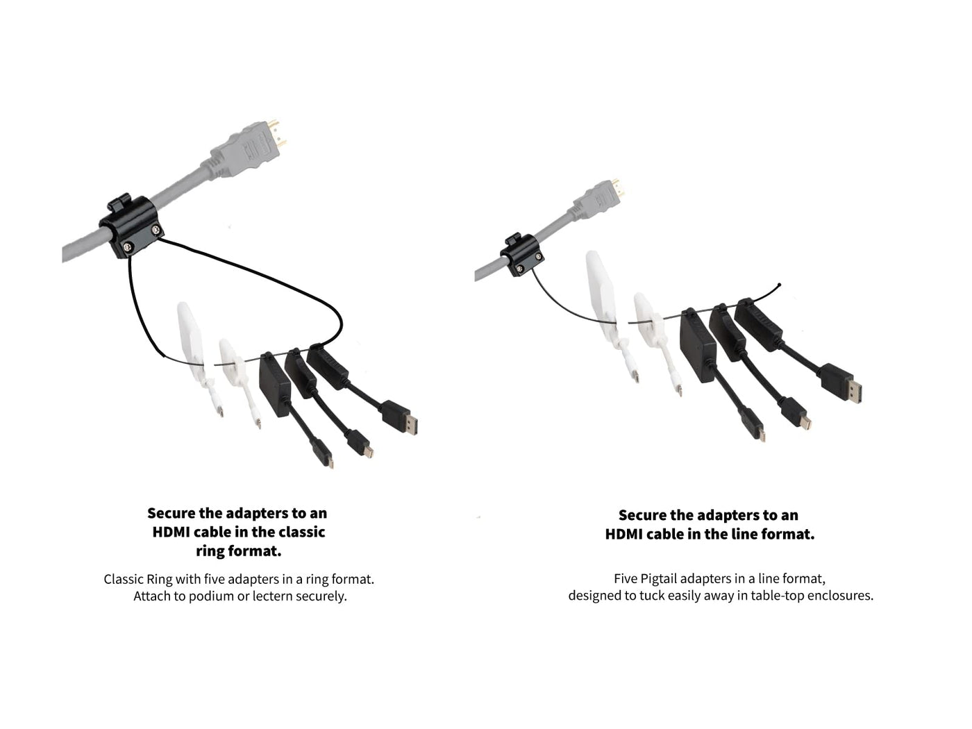 The Original And Best Liberty Av Patented Hdmi Adapter Ring Is The Industry Leading Way To Securely Connect Any Device To An Hdmi Cable. The Liberty Adapter Ring Is Found In More Conference Rooms, Huddle Spaces, Classrooms And Work From Anywhere Spaces Than Any Other Solution. Liberty Adapter Ring Securely Attaches To Multiple Different Adapters To An Hdmi Cable To Your Display While Any Adapter You May Need Is At Your Fingertips. Available In Multiple Different Adapter Configurations. Not Only Do You Get A Solid And Reliable Connection, But The Adapters Are Guaranteed To Stay Locked To The Hdmi Cable So They Won'T Get Lost For The Next Presentation!