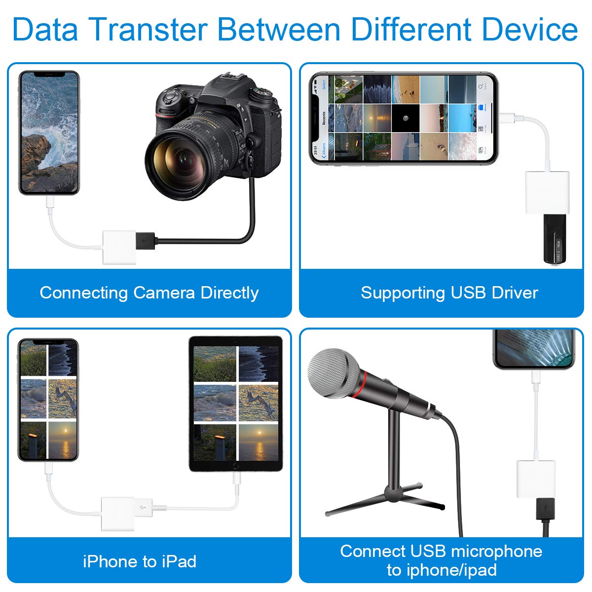 Lightning To Usb3 Camera Adapter With Charging Port, Lightning Female Usb Otg Cable Adapter For Select Iphone,Ipad Models Suppor