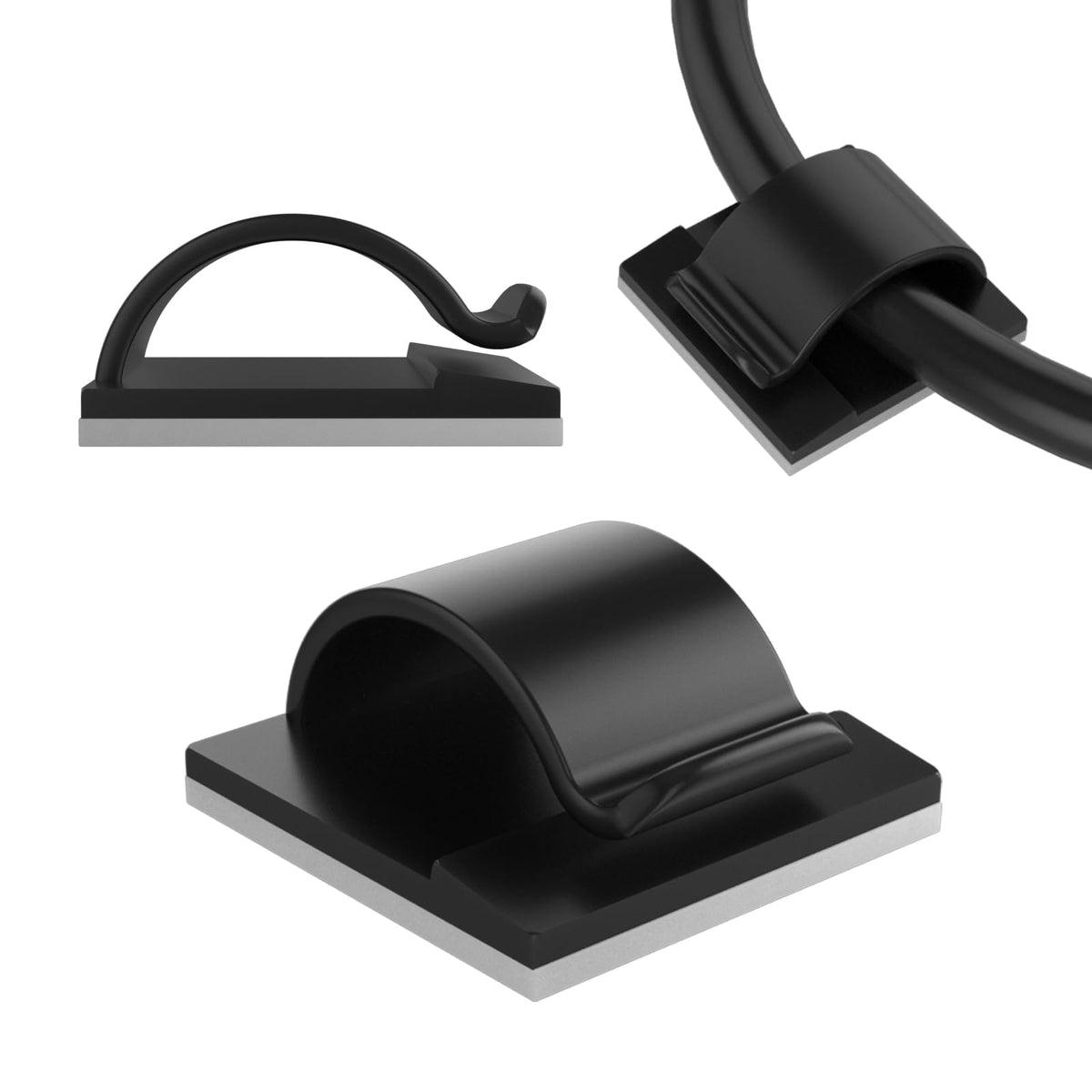 Q: What surfaces can the adhesive cable clips stick to?A: The adhesive cable clips work best on smooth surfaces such as walls, desks, and car interiors, helping to keep your space organized and free from cable clutter.