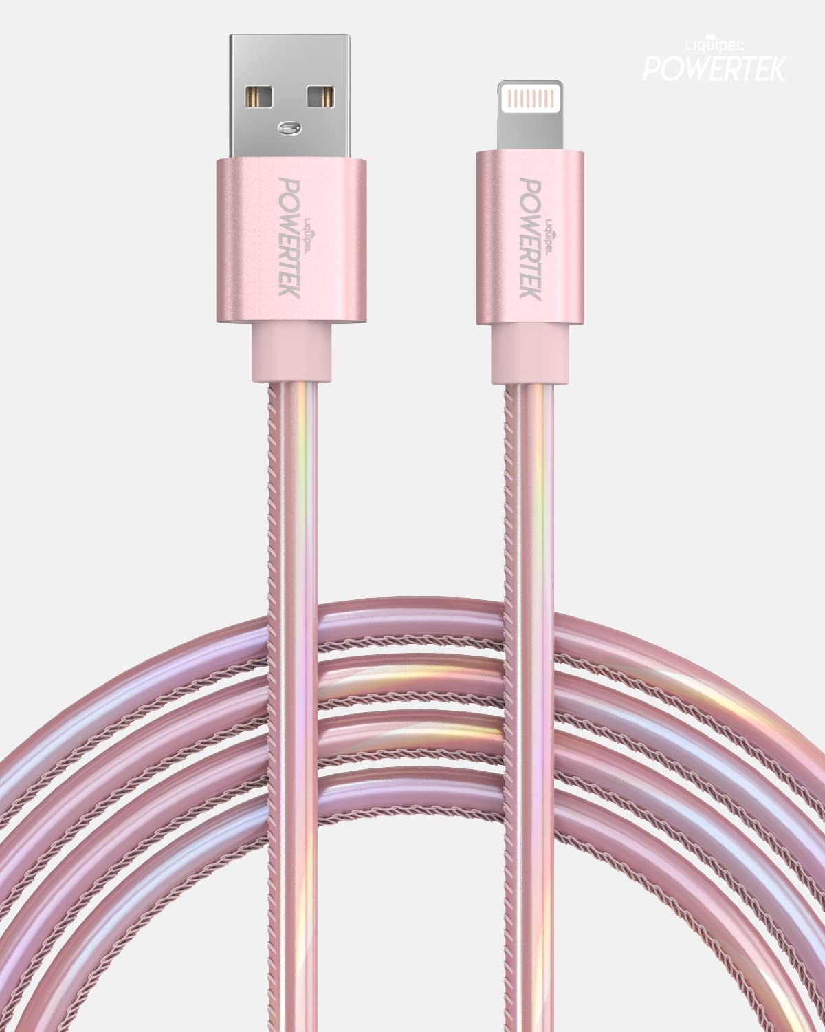 Liquipel Powertek Iphone Charger Cable, 6 Ft Fast Charging Lightning To Usb Cord Adapter, Compatible For Ipad, Mfi Certified, Metallic Shine (Light Pink)