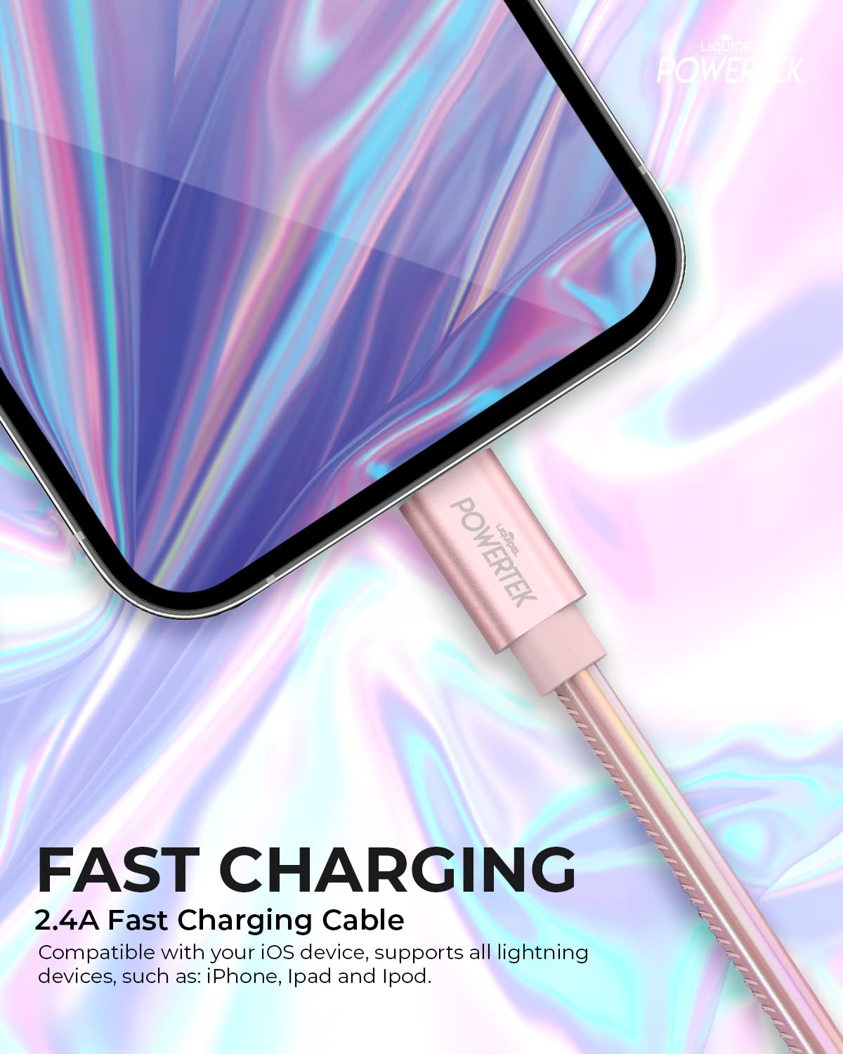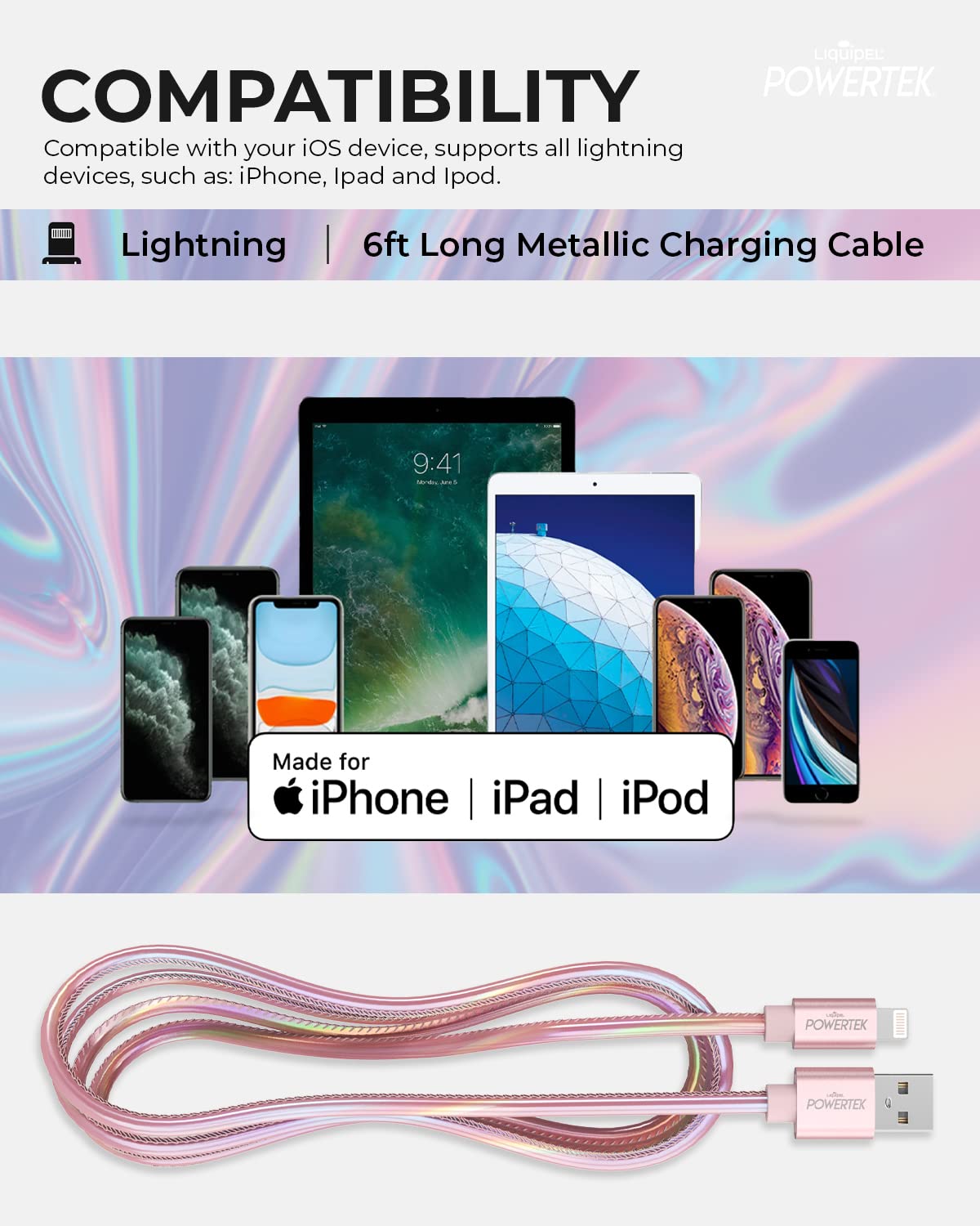 Liquipel Powertek Iphone Charger Cable [Mfi Certified], Fast Charging 6Ft Lightning To Usb Cord Adapter, Compatible For Ipad, Metallic Shine