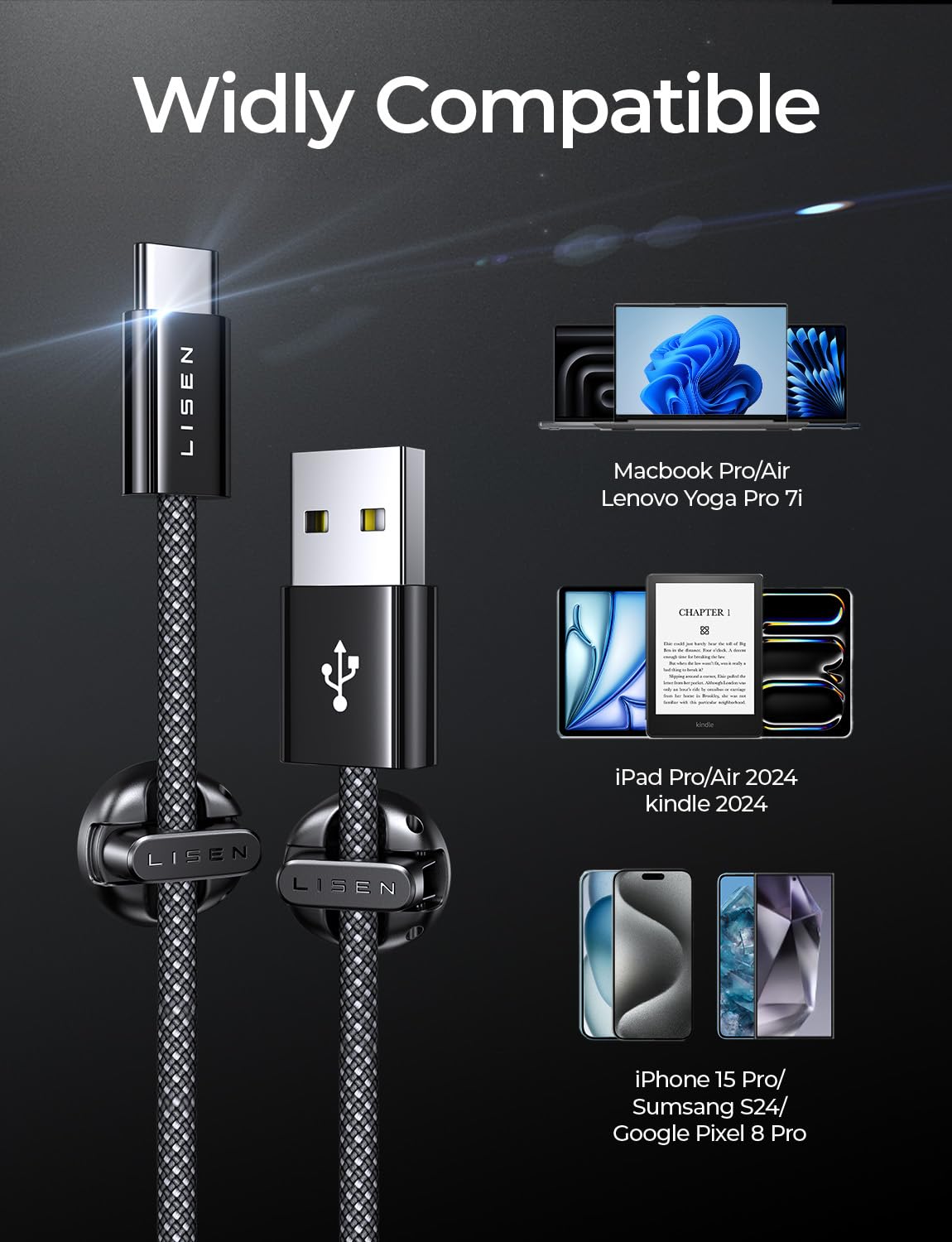 Lisen For Iphone 16 Charger Cord Usb To Usb C Cable, 2 Pack 3Ft Iphone 15 Charger Cord With 2 Cable Organizers, Iphone 15 Pro Ma