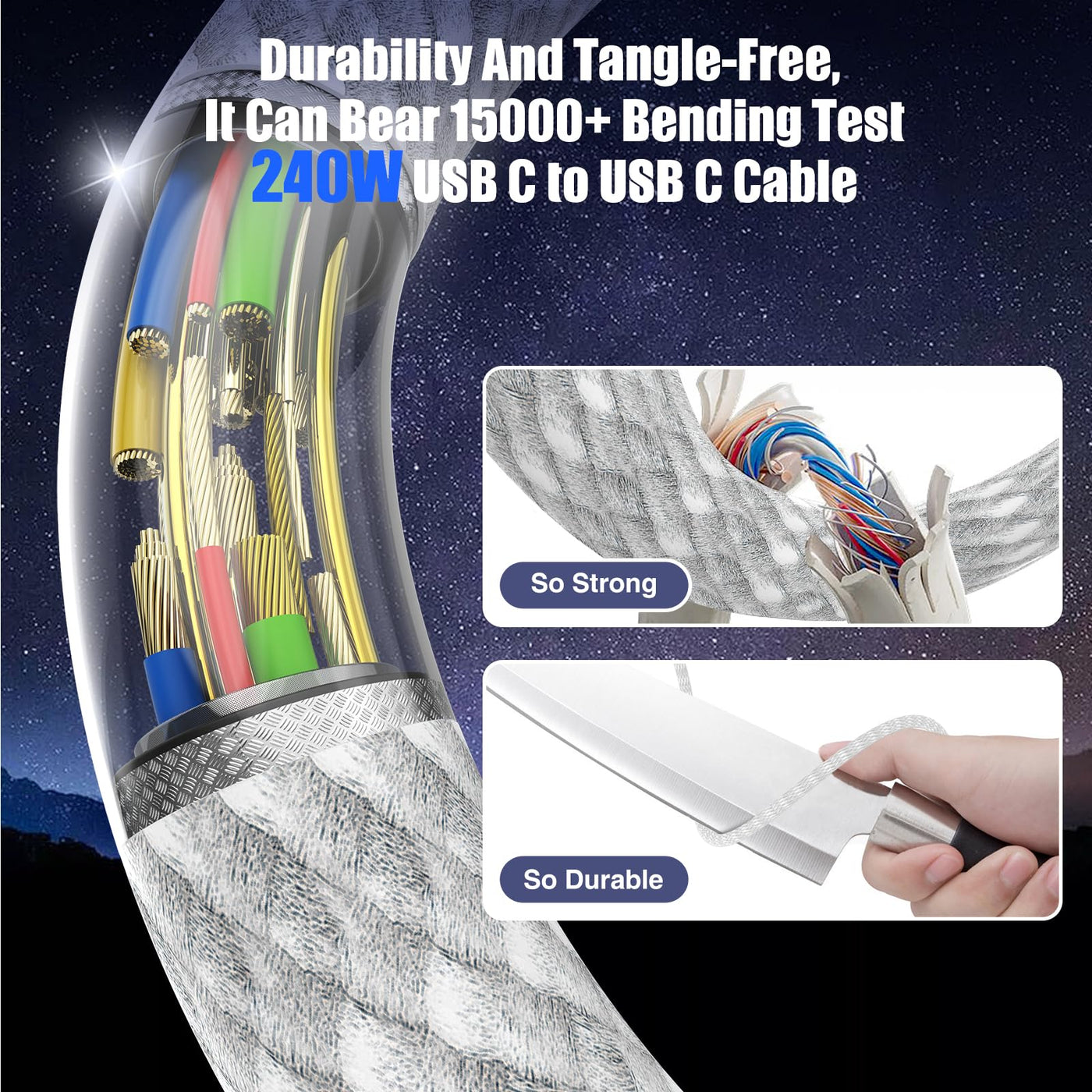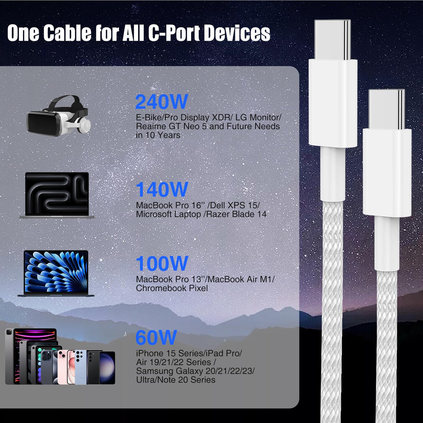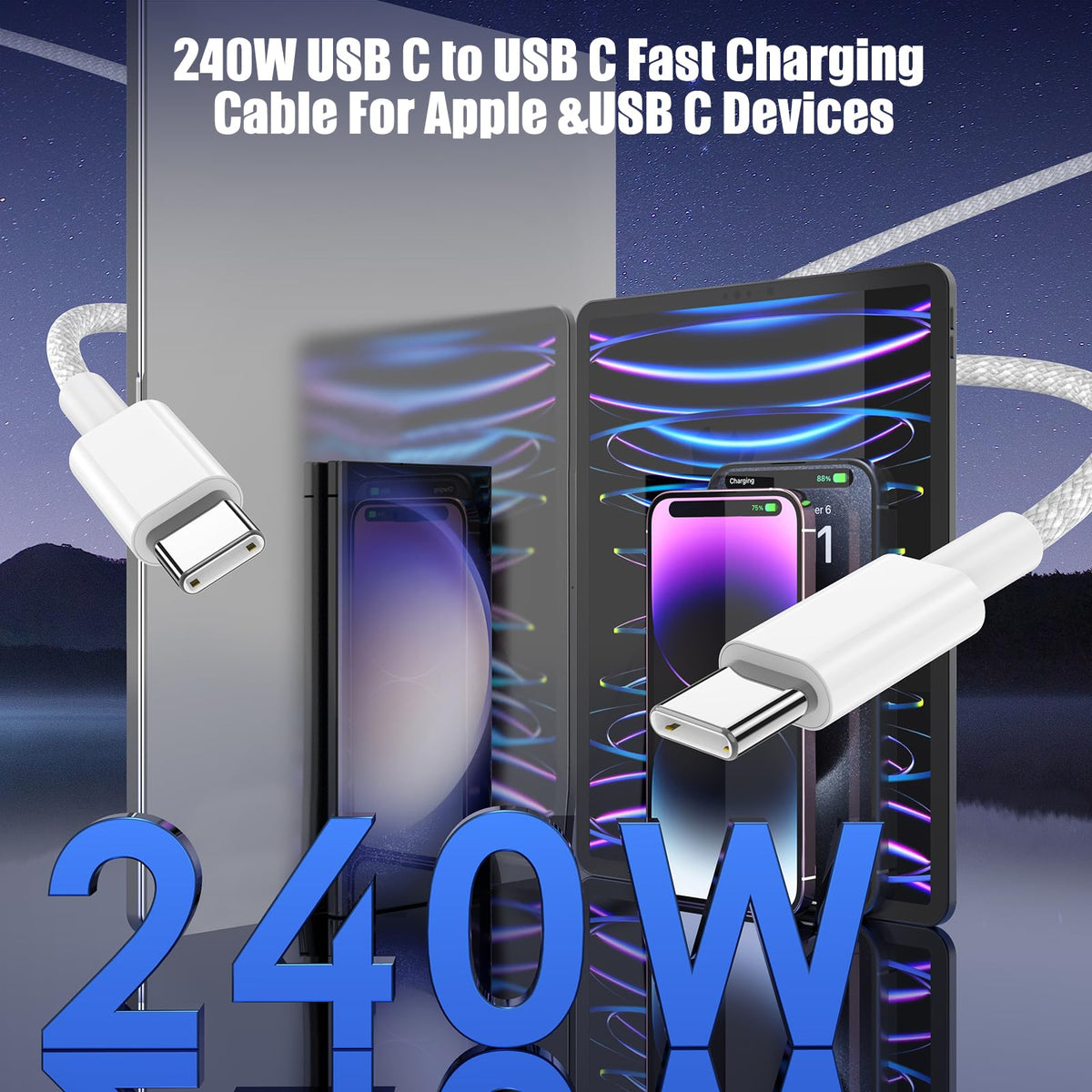 240W Usb C To Usb C Cable 3-Pack [3.3Ft+6.6Ft+6.6Ft],Type C Fast Charging Cable Compatible With Iphone 15/15Plus/15 Pro/15Pro Max,Galaxy S24 S23,Ipad, Macbook,Switch,Pixel And More