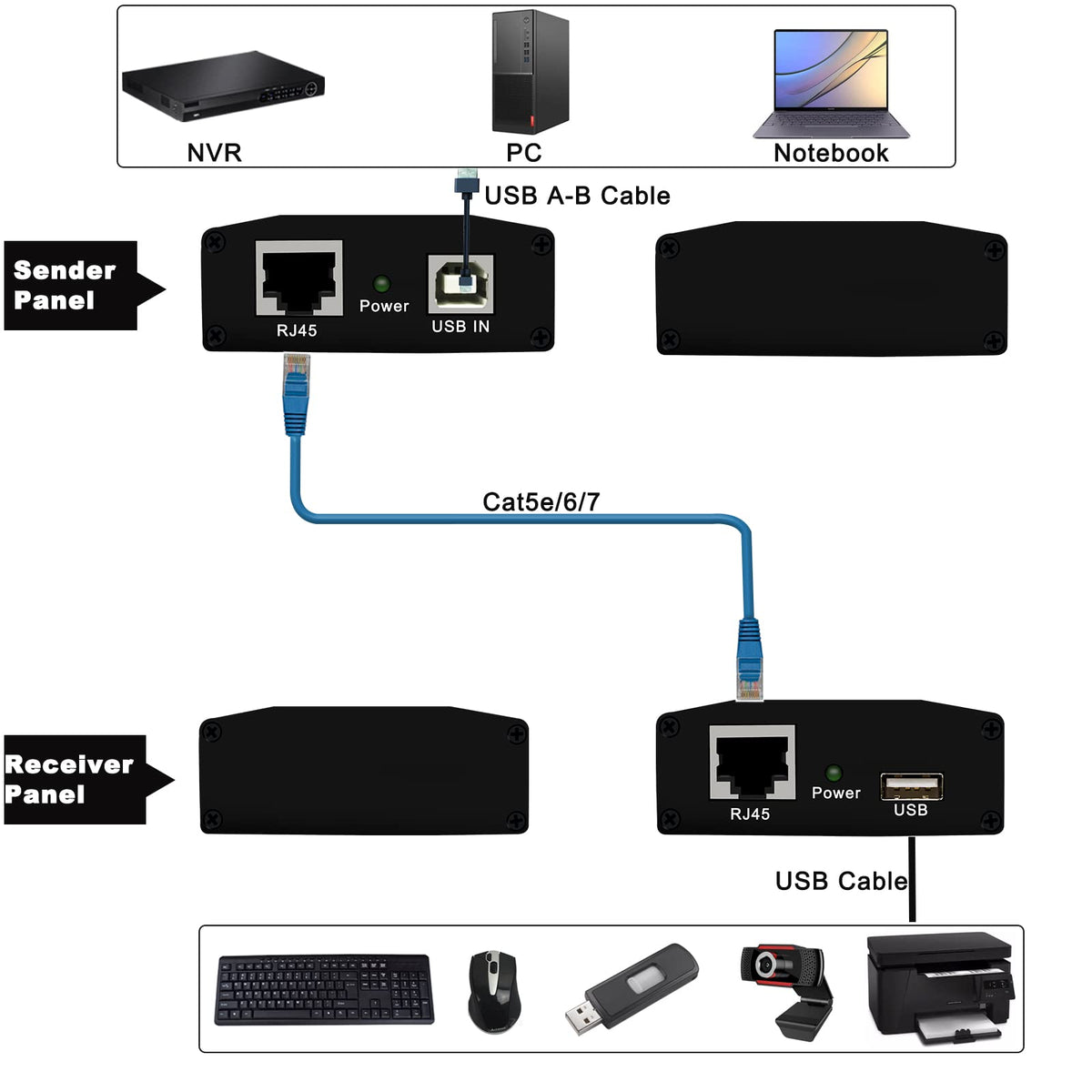 Lornceng Usb Extender Over Ethernet Cat5E/6/7 Up To 656Ft(200M), Usb Rj45 Extender For Keyboard Mouse Extension, Plug And Play,