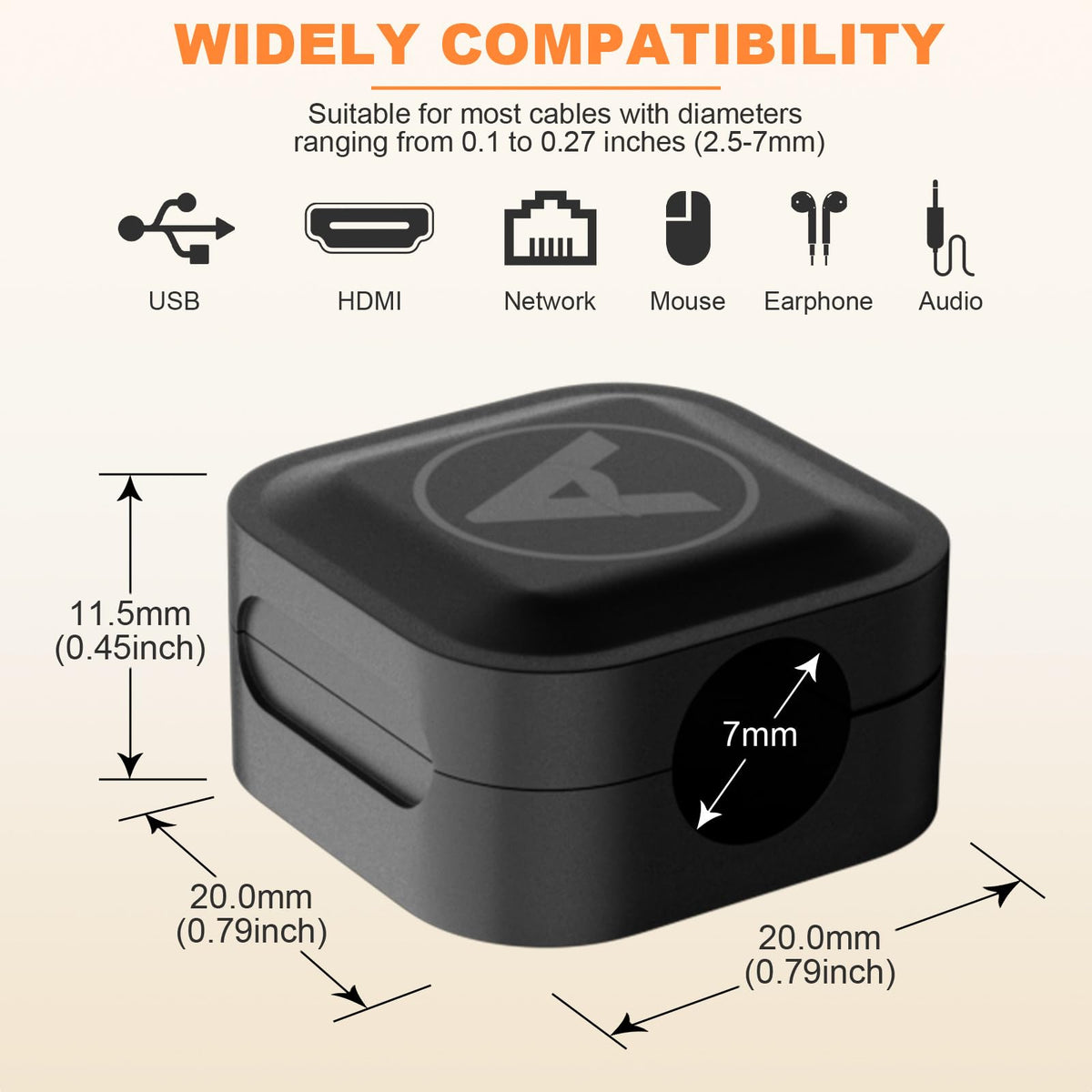 Q: What types of cables can the Magnetic Cable Clips hold?A: The Magnetic Cable Clips are designed to hold various types of cables that are below 7mm in diameter, including phone charging cords, USB cables, computer power cords, and HDMI cables.