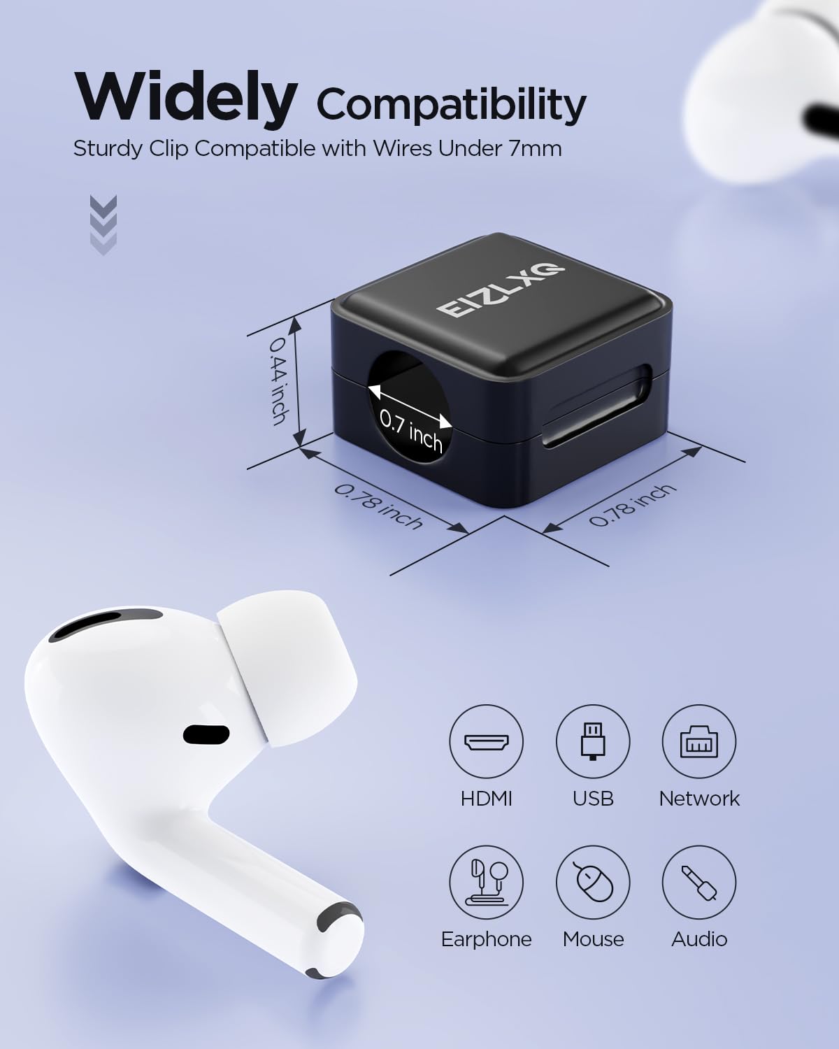 Q: What makes the EIZLXQ cord organizer different from other cable management solutions?A: The EIZLXQ cord organizer features a unique magnetic design with a 60° rotating shaft, allowing for effortless one-handed placement and retrieval of cables. This innovative design, combined with its compact size, helps maximize space while keeping your cords neatly organized.