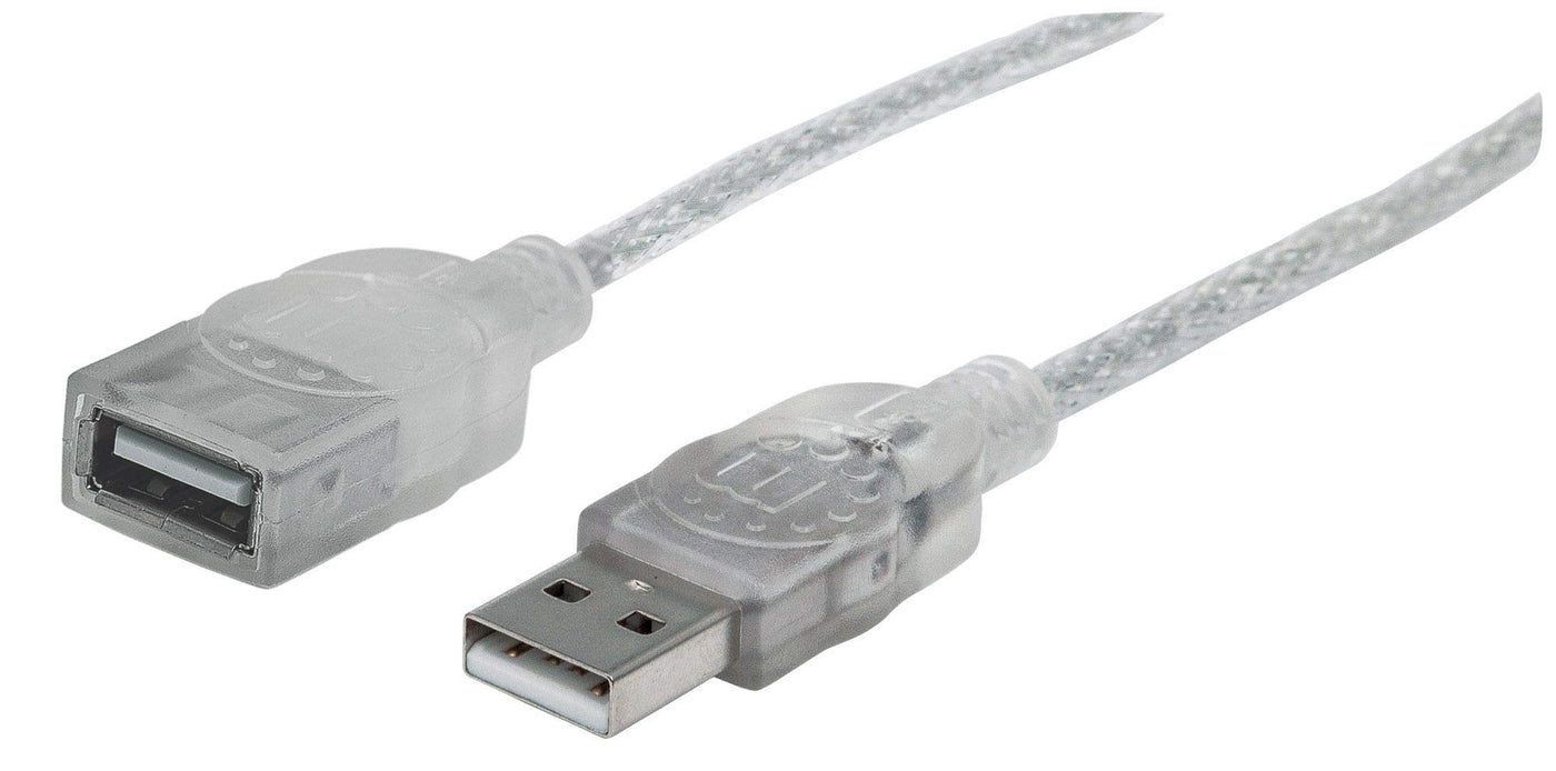 Manhattan 6 Feet Hi Speed Usb Device Cable A Male/A Female, Translucent Silver (336314)