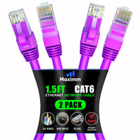 Maximm Cat 6 Ethernet Cable 1.5 Ft (2 Pack) High Speed Lan Cable, Internet Cable, Patch Cable, And Network Cable Utp, 10Gbps, 550Mhz Ethernet Cord Purple