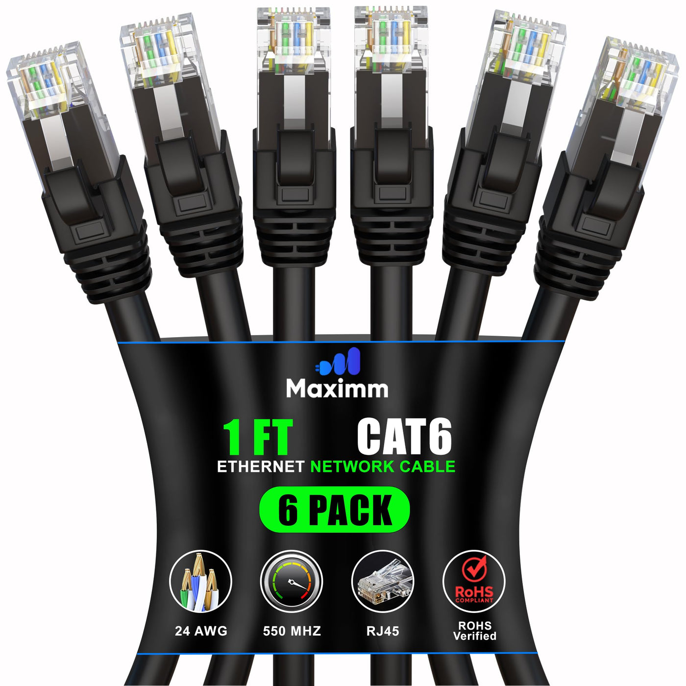Maximm Cat 6 Ethernet Cable 1 Ft (6 Pack) High Speed Lan Cable, Internet Cable, Patch Cable, And Network Cable Utp, 10Gbps, 550Mhz Ethernet Cord Black