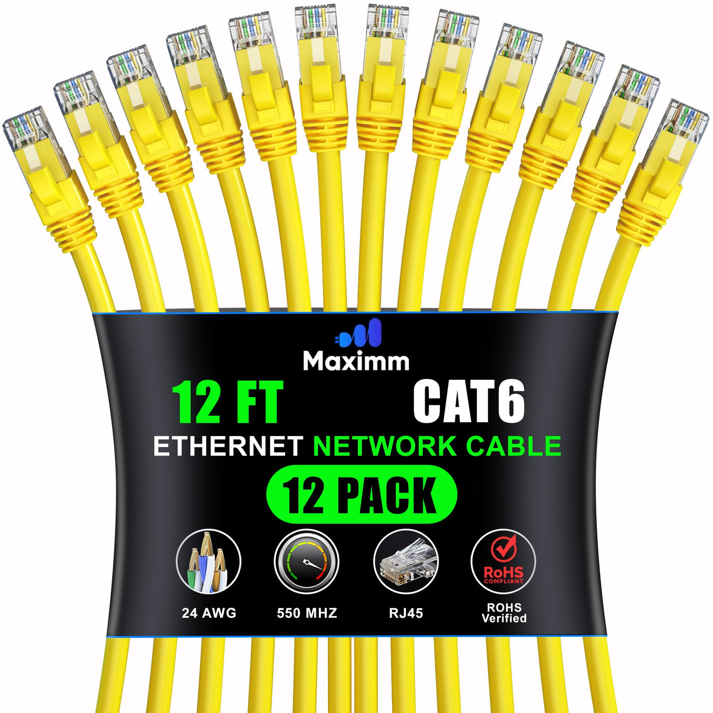 Maximm Cat 6 Ethernet Cable 12 Ft (12 Pack) High Speed Lan Cable, Internet Cable, Patch Cable, And Network Cable Utp, 10Gbps, 550Mhz Ethernet Cord Yellow
