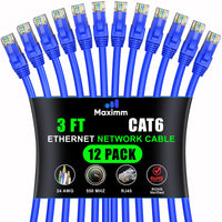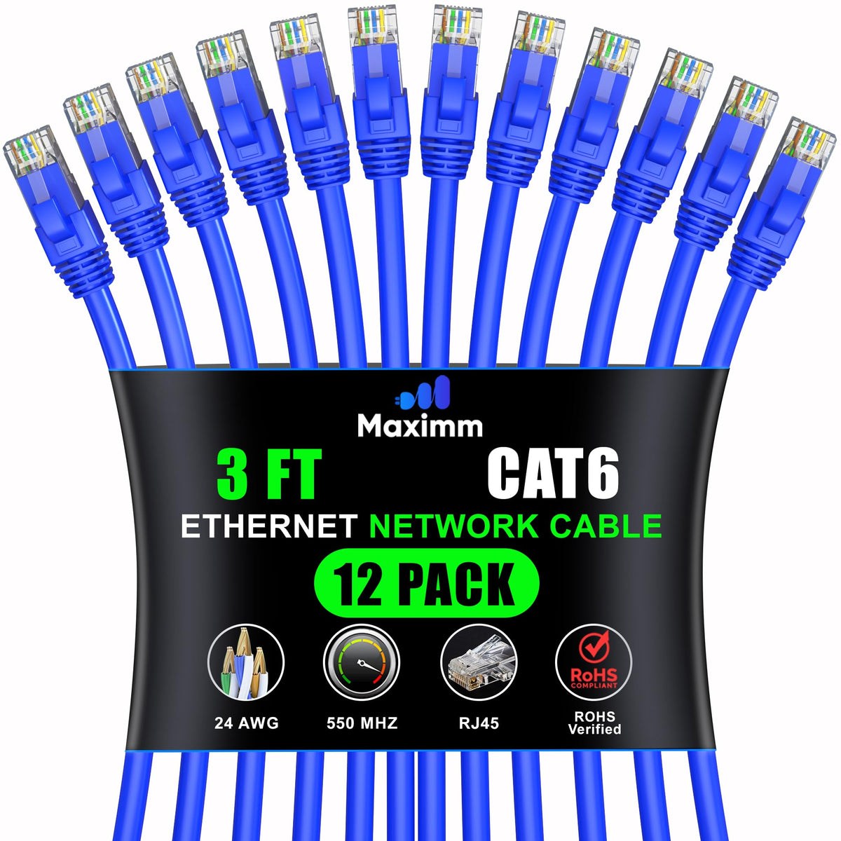 Maximm Cat 6 Ethernet Cable 3 Ft (12 Pack) High Speed Lan Cable, Internet Cable, Patch Cable, And Network Cable Utp, 10Gbps,