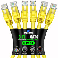 Maximm Cat 6 Ethernet Cable 3 Ft (6 Pack) High Speed Lan Cable, Internet Cable, Patch Cable, And Network Cable Utp, 10Gbps, 550Mhz Ethernet Cord Yellow