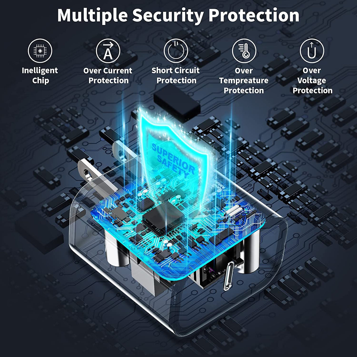 Mfi Certified 20W Usb C Power Delivery Fast Charger For Iphone3X Fast Charging & Efficient Data Transfer:1. Employing Smart Chipset Control Technology, Fully Support Itunes, Data Syncing Transferring Up To 480Mbps(30Mb/S).2. Using High Advanced Smart-Iq Chipset, Fast Charge The New Iphone 14 From 0% To 50% In Just 30 Minutes, Save More Than 1.8 Hour For You!Technical Specifications:Mfi Certified Lightning Cableinput Voltage: 100-240V ~ 50-60Hz, 0.6Aoutput Power: 5V/3A, 9V/2A, 9V/2.22A, 12V/1.5Acertifications: Mfi/Ul/Etl/Fcc/Ce/Rohs20W Usb C Power Delivery Fast Charger:Iphone 14, 14 Plus, 14 Pro, 14 Pro Maxiphone 13, 13 Mini, 13 Pro, 13 Pro Maxiphone 12, 12 Mini, 12 Pro, 12 Pro Maxairpods, Airpods Proiphone Se 2020Iphone 11, 11 Pro, 11 Pro Maxiphone X, Xr, Xs, Xs Maxiphone 8, 8 Plusipad Pro 10.5'', Ipad Pro 11''Ipad Mini 5 7.9'' And Later Modelsstandard Charge Speed (5V/2.4A):Iphone 7 7 Plus, 6 6 Plus 6S 6S Plus, 5 5C 5S Se, Ipad Air, Ipad Mini, Ipad Pro 9.7''Mfi Certified C To Lightning Cable:1. Original C94 Connector And Mfi Certified Chip, Builds A Double Protection For Your Iphone Or Ipad.2. Built-In Overvoltage Protection, Battery Protector And Automatic Chip Recognition Functions Protect Your Iphone Battery.Bulit In Smart-Iq Chip Tech:1. Mfi/Ul/Etl/Ce/Fcc Certified Charger Ensure Safety And Stability.2. Internal Protection Mechanisms Offers Multiple Protection Against Short-Circuit, Over-Temperature, Over-Current, Over-Voltage Etc.3. Built-In Smart-Iq Chipset And Protection Resistor, Which Automatically Identify And Match The Most Suitable Charge Speed Required By The Charge Device.What You Get:2 * 20W Usb C Power Delivery Fast Charger + 2* 6Ft Mfi Certified C To Lightning Cable.We Provide 6-Years Warranty For This Charger And Lifetime Technical Support.
