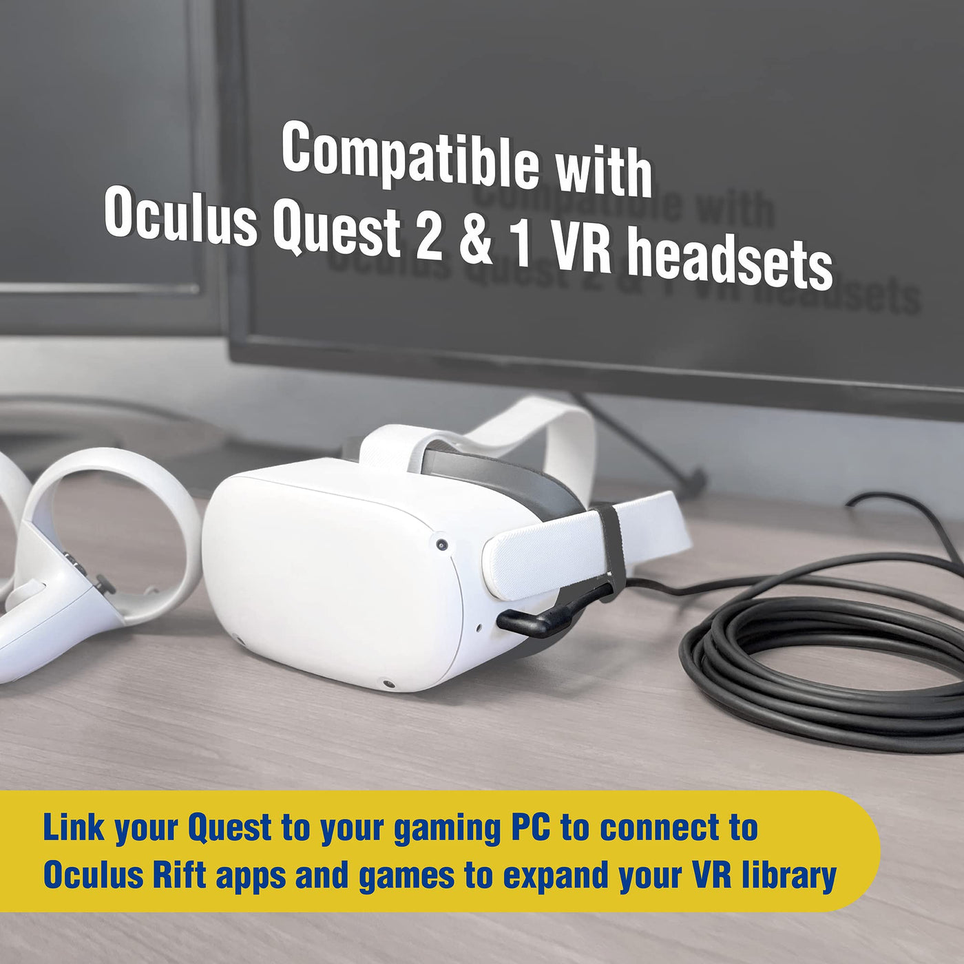 Q: Is the MICRO CONNECTORS 16FT USB 3.2 Gen 1 Right Angle C to C Cable compatible with Oculus Quest 2?A: Yes, this USB 3.2 Gen 1 cable is fully compatible with both Oculus Quest 1 and Oculus Quest 2, allowing you to link your headset to your PC.
