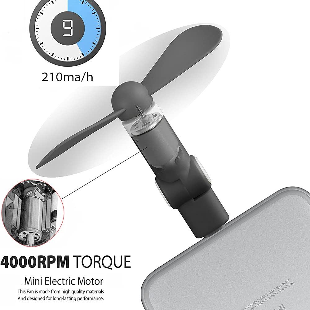 Q: What is the power consumption of the fan during use?A: The fan is designed to be energy-efficient, consuming only about 8% of power during continuous use for half an hour, making it a great option for prolonged use without draining your device's battery.
