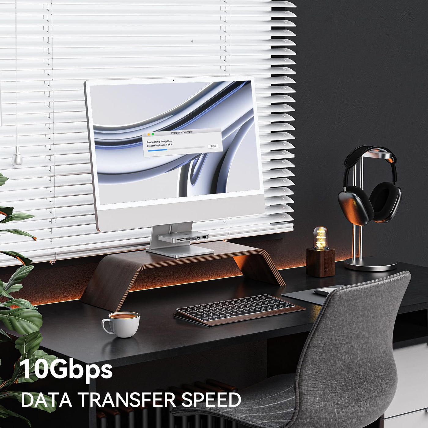 Q: Is this USB hub suitable for data transfer?A: Yes, the Minisopuru USB C Hub supports super-speed data transfer up to 10Gbps, making it efficient for transferring and backing up data from various external devices.