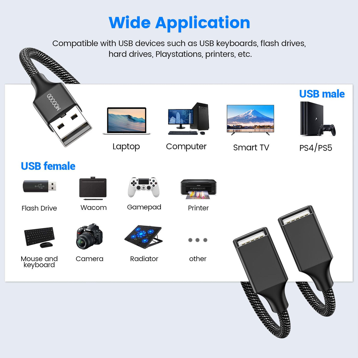 Mogood Usb Splitter Dual Usb Port Usb Extension Cable Usb Y Splitter Usb Power Splitter Double Usb Adapter Charger Cable Hub Ada