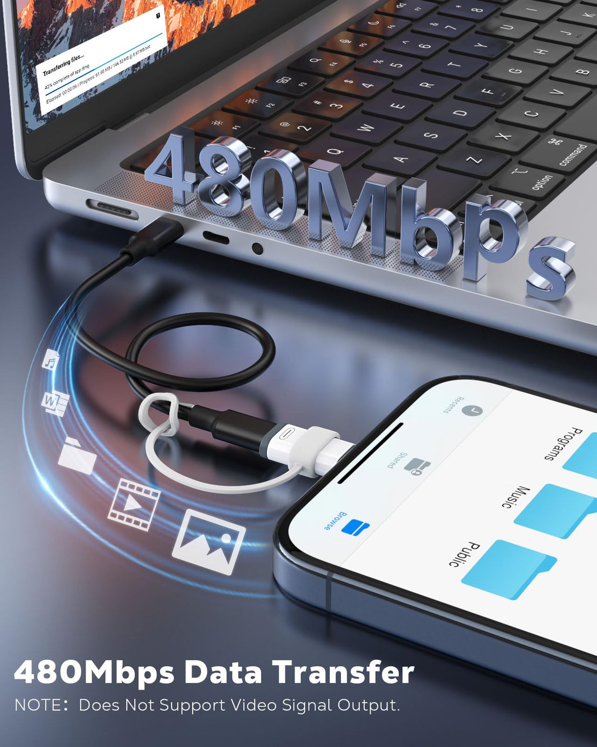 Note:Do Not Support Otg Function (Do Not Use It With Usb Stick/Any Protable Hard Drive) And Audio Function(Do Not Use It With Any Lightning Port Earphone/Earbub/Earpods/Microphones/Audio Device.); Do Not Support Video Input/Output(Do Not Use With Hdmi Converters,Cameras);Do Not Support Apple Pencil; Do Not Support Carplay; Only Support Charging With Cable (Recommand To Use Original Cable To Avoid Charging Issues); Only Support Data Transfer Between Phone/Tablet And Computer With Original Cable. | Broad Compatibility: The Lightning To Usb C Adapter Is An Ideal Solution For Connecting Usb C Devices To Lightning Cable, Compatible With Iphone 16/16 Pro/16 Plus/16 Pro Max, Iphone 15/15 Pro/15 Pro Max/15 Plus, Ipad Pro/Air With Usb C Port; Surface Book, Macbook Pro/Air; Galaxy S24/23/22/21, S24/23/22/21 Ultra, S24/23/22/21 +, Galaxy Z Flip/Fold 5, Galaxy Note 20/20 Ultra, Galaxy Note 10/10 Plus; Htc U12; Lg V50; Google Pixel 7/6/5/4 And Other Devices With Type-C Ports. | Support Charging And Data Transfer: This Iphone To Usb C Adapter Enables Charging And Data Transfer Speeds Of Up To 480 Mbps, Making Your Iphone Or Ipad Directly Compatible With Lightning To Usb-A Cables And Lightning To Usb-C Cables. It Eliminates The Need To Carry Around Extra Cables. Perfect For Traveling, Home And Office Use. | Not Support Audio And Otg Function: Only Supports The Charging Function, And The Data Transfer Between Phone And Computer Or Tablet And Computer (Recommand To Use Original Cable To Avoid Possible Problem). Do Not Support Otg, Audio And Video Functions. Not For Apple Pencil (1St Gen.), Mouse, Keyboards, Usb Flash Drives, Card Readers, Printers, Microphones, Hdmi Converters And Cameras, Etc. | Lose-Proof And Long-Lasting: This Iphone 15 Adapter Comes With Anti-Lost Silicone Loops, It Can Be Easily Held And Attached To Your Most Used Cables, Which Can Prevent Loss And Facilitate Storage And Carrying. With Strict Quality Testing Standards, This Lightning To Usb C Adapter Has Passed Over 20,000 Push And Pull Tests. Ideal For Travel, Home And Office Use. | You Will Get: Lightning Female To Usb C Male Adapters