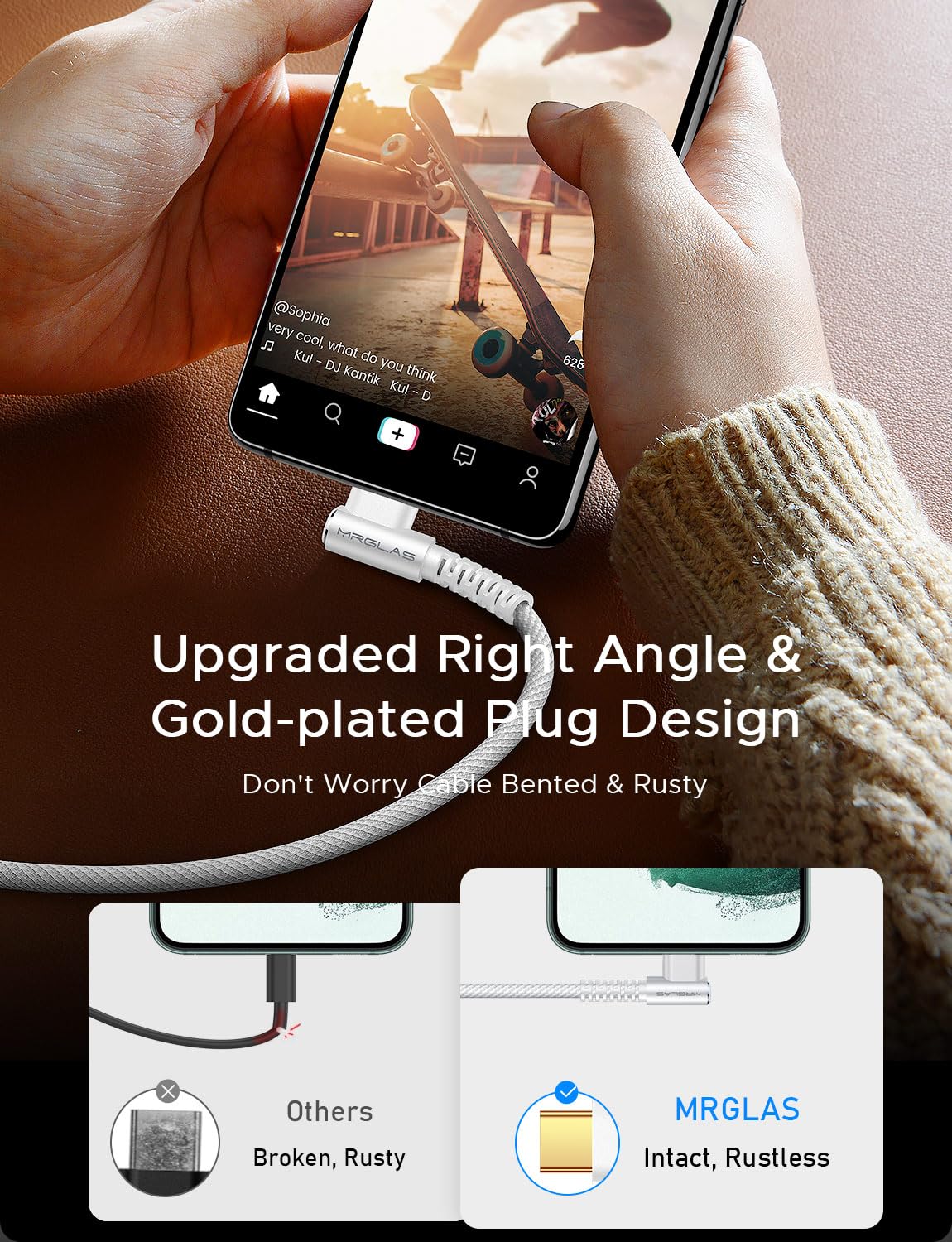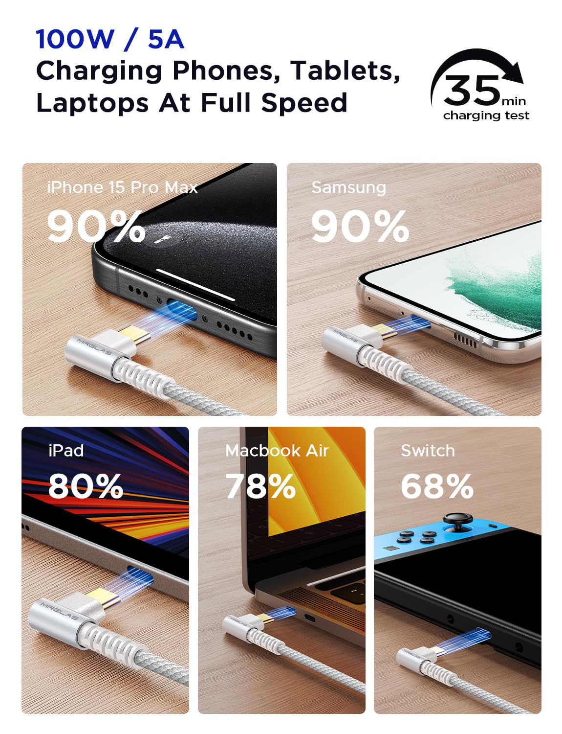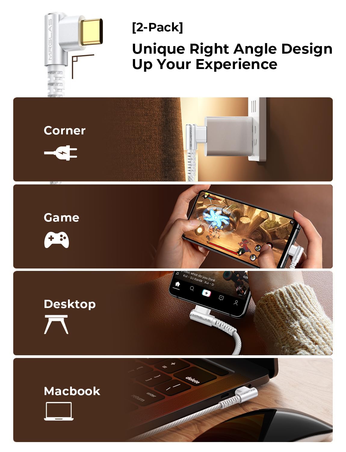 Mrglas 2-Pack 100W/5A Usb C To Usb C Cable 6.6Ft, [User Friendly 90 Degree] Usbc To Usbc Fast Charging Cable, [Never Rupture] For Iphone 15 Pro Max Samsung S24 S23 Ipad Pro Macbook