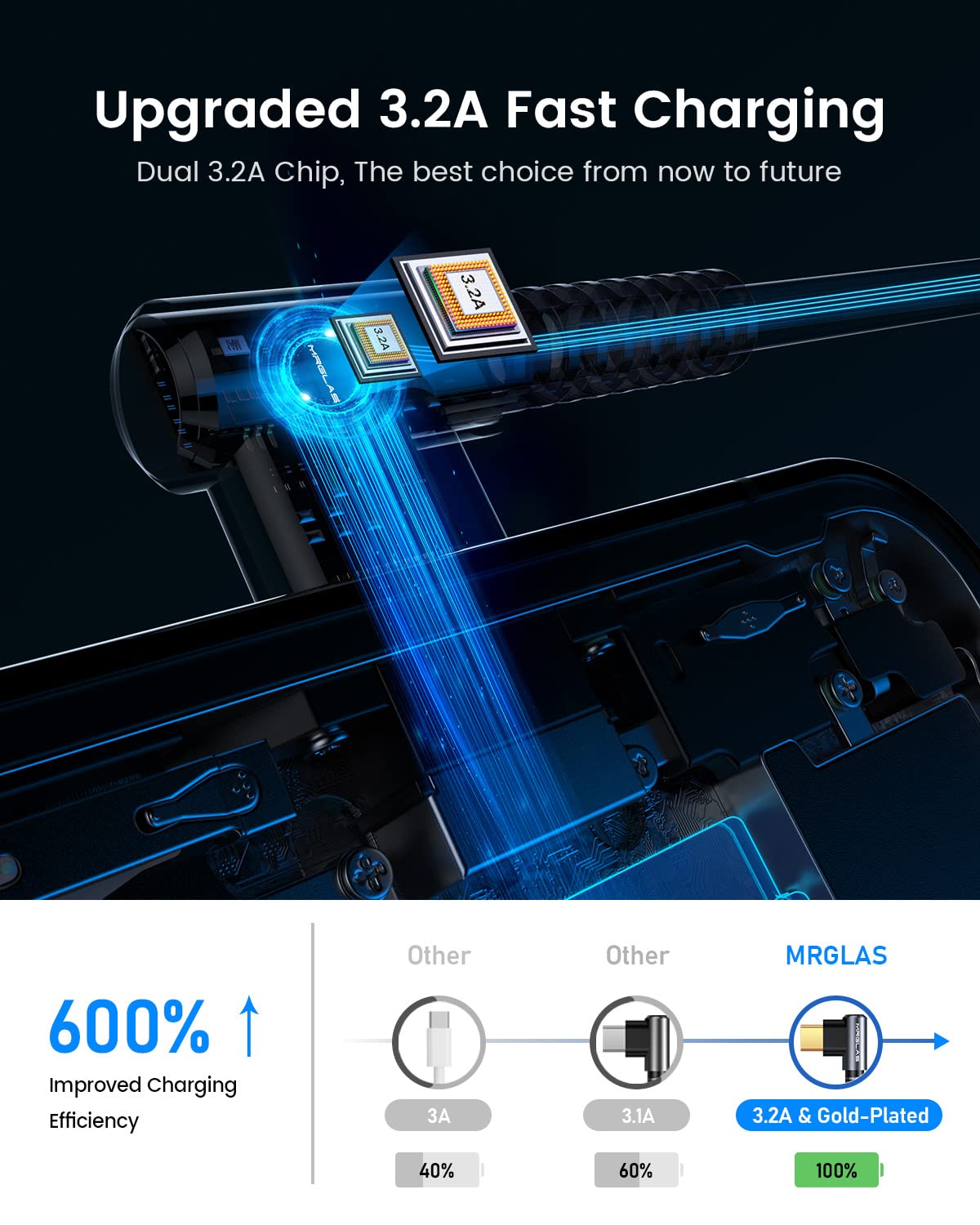 ??[Lifetime Promise] Were So Confident In Our Cables, We Are Offering A Hassle-Free Replacement For All Quality Issues. Not For Half A Year, Not For 18 Months, But For An Entire Lifetime. Its The Only Cable You Will Ever Need To Buy. We Provide This 4-Pack 3.2A Premium Nylon-Braided Usb C Charger Cable Right Angle (10+6.6+3.3+1.6Ft).?[Certified 3.2A Dual Chip Fast Charging] Mrglas 3.2A Usb C Fast Charging Cable Is 2X Faster Than Other Cables With 3.1A, Mrglas Usb C Cable With Gold-Plated Design Avoids Energy Loss Than Other Cables, And It Has A Transfer Speed Of Up To 480Mbps. With A Data Transfer Rate Of Up To 480Mbps Between Two Devices, This Usb-C Connection Can Download 100 Songs Every 5 Seconds.??[Upgraded Exclusive Right Angle Design] Mrglas Usb A To Usb C Cable With An Innovative 90 Degrees '' L '' Design. It Can Lessen Stress On Cords And Your Phone'S Usb-C Port, Effectively Avoid The Bending Of The Cord End And Extend The Life Of The Charging Cable. It'S User-Friendly Design More Convenient And Comfortable For Playing Games, Watching Videos, Reading E-Books When You Charging. [Note: Compatible With All Phone Cases]??[Upgraded Gold-Plated & Officially Certified] Mrglas Usb A To Usb C Cable With Gold-Plated Design Avoids Energy Loss Than Other Cables,The Gold-Plated Plug Has Rustless & Anti-Corrosion, The Gold-Plated Cable Service Life 3X Than Others. This Usb C Charger Fast Charging Cable Has An Gold-Plated Head That Complies With The Corresponding Standards Of Electronic Safety Certification.??[Military-Grade Nylon Braided Material] Usb Type C Cable Is Joined With Strong Military Nylon Braided Fiber, Which Is The Most Flexible, Most Robust, And Most Durable Material In Existence. Which Improves Tensile Force By 300% And Features A Unique Stress Relief Support Design That Can Endure 100,000+ Bend Tests