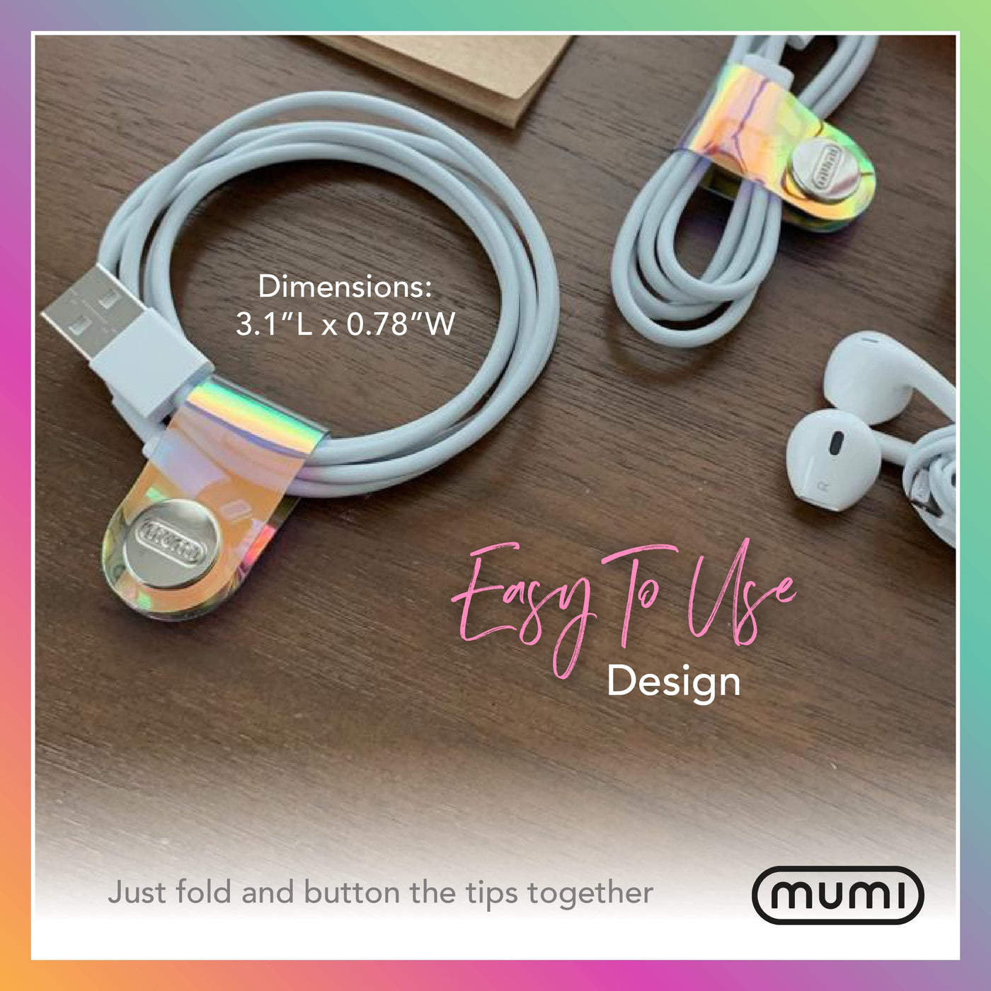 We Are Two Friends, Mothers, Entrepreneurs, Mini-Van Owners, Multi Taskers And Happy Seekers. Amidst School (And After School) Car Pools, Grocery Runs, And A Myriad Of Other Daily Chores, We Founded Our Company In 2014 To Satisfy Our Shared Entrepreneurial Drive. Being Subjected Daily To Grueling Logistical Challenges, We Decided To Create A Company Whose Purpose Is To Share With The World The Liberating Feeling Of Being Well Organized. Mumi Design Is Committed To Making Our Lives Easier, By Delivering An Efficient And Practical Way To Organize Our Things. Keep Your Wires And Cables Organized With Our Mumi Holographic Cord Organizer. No More Tangled And Bulky Cords, These Cable Straps Are The Best Solution For Organizing Your Earphone Wires, Extension Cords And Other Electronic Accessories. Our Bpa And Lead-Free Cord Wraps Offer A Colorful And Attractive Way To Organize Your Cables. These Clear, Holographic Plastic Cable Organizers Keep Your Workspace Free Of Messy Cables, Wires, And Other Tangled Clutter. Our Durable Cord Organizer Is Suitable For Both Indoor And Outdoor Office And Home Use. With This Cable Management Accessory, You Can Easily Keep Your Cables And Wires Organized Wherever You Go. Make Your Life Easier With Our Reusable, Colorful Cable Straps. Just Fold And Button The Tips Together To Keep Your Earphones, Charger And Data Cables Tidy And Tangle-Free.
