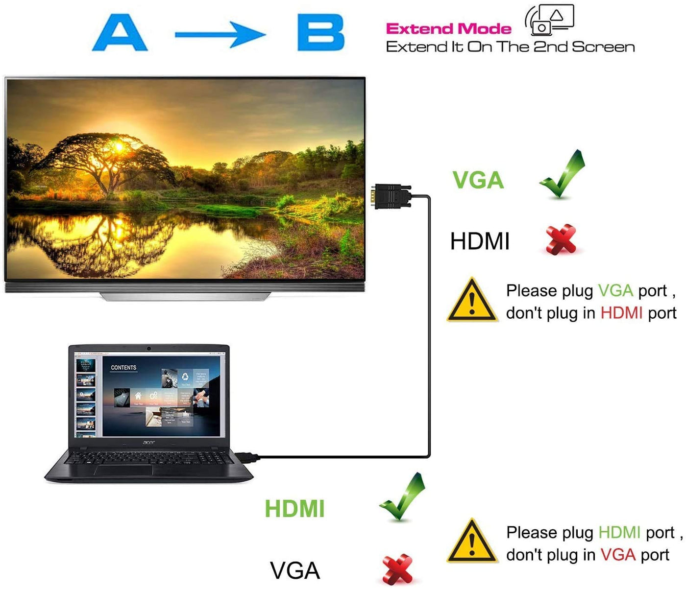 Q: Can this adapter cable be used in reverse to connect VGA to HDMI?A: No, the NewBEP HDMI to VGA Adapter Cable is not a bi-directional adapter. It is designed to convert HDMI signals to VGA only and cannot be used to convert VGA signals to HDMI.