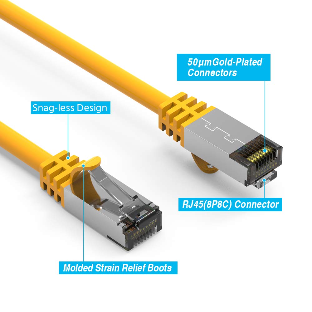Nippon Labs 60Cat8 10 26Yw Cat8 Ethernet Cable 10 Feet Slim Series Yellow | 2Ghz, 40G, S/Ftp Shielded 40Gbps 2000Mhz Sftp Pa