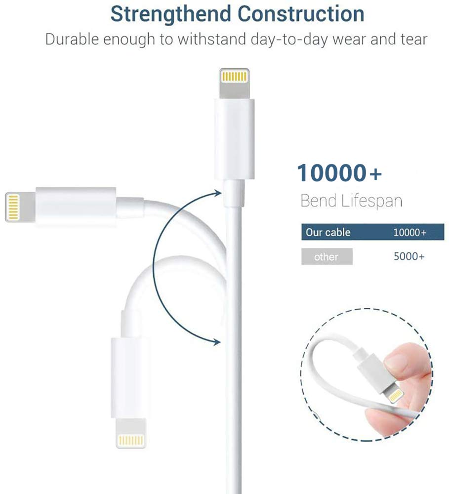 Q: How durable is the Novtech iPhone Charger Cord?A: The Novtech iPhone Charger Cord is designed for durability, with military-grade materials allowing it to withstand over 20,000 plug and unplug cycles and 10,000 bending cycles, making it three times stronger than standard iPhone cables.