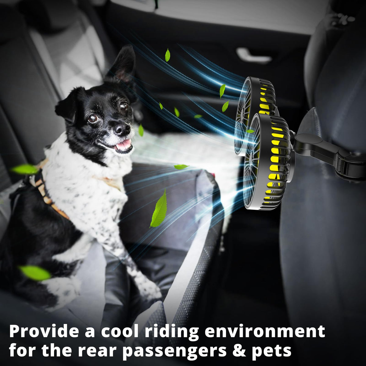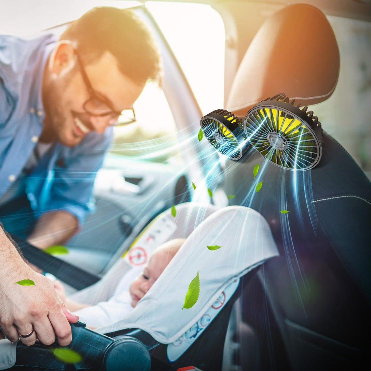 Ouffun Car Fan For Backseat, Dual Head Usb Car Seat Fan, 3 Speeds Strong Wind 360 Rotatable Vehicle Rear Headrest Fan For Car, A
