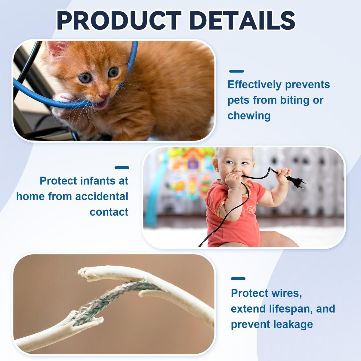 Q: Is the cord protector safe for pets?A: Yes, the cord protector features a flexible opening design that makes it safe to install. The PVC material acts as an effective barrier between your pet and potentially harmful electrical cords.