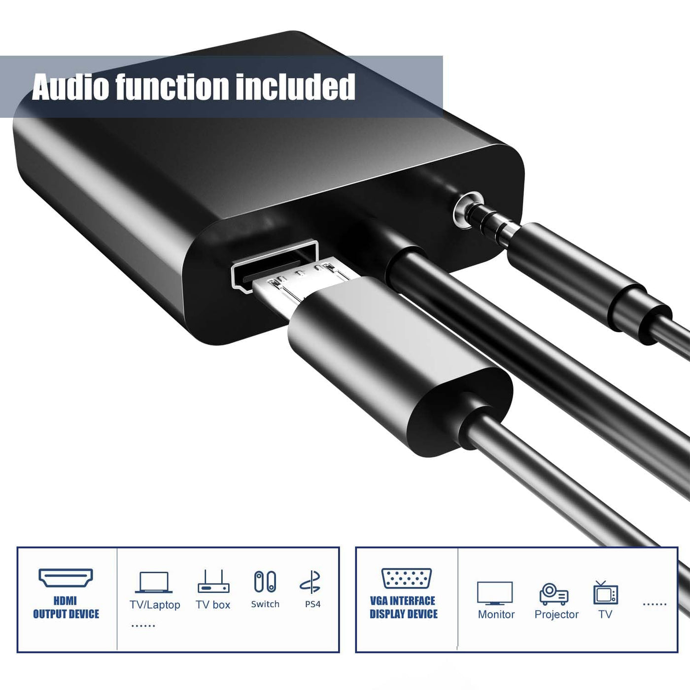 Hdmi To Vga Adapter This Adapter Converts Your Hdmi Signal To Vga Signal And It'S Useful To Do A Business Presentation Or Extend Your Desktop Screen To A Monitor Or Tv. This Hdmi To Vga Adapter Supports High Resolution And Has Great Compatibility, So It'S An Excellent Choice To Connect A Desktop, Laptop, Or Other Devices With Hdmi Port To A Vga Display Such As Monitor, Projector Or Tv. Audio Function Included: With 3.5Mm Aux Stereo Audio Jack Adapter, You Can Enjoy The Audiovisual Feast. With Usb Power Supply For Devices With A Low-Power Output Port And Ensure The Normal Operation Of The Stream. Notes: It Is Not A Bi-Directional Converter, Cannot Transmit Signals From Vga To Hdmi, And Is Not Compatible With Devices With Blu-Ray Players And Low-Power Hdmi Ports. Such As The Ps4, Apple Macbook Pro With Retina Display, Mac Mini, And Apple Tv. Built-In Chip: Built-In Advanced Integrated Circuit Chip, Hdmi Digital Signal Into Vga Analog Signal, It Has Unbelievably High Stability Performance. Hdmi Male To Female Converter Support Up To 1920X1080@60Hz (1080P Full Hd), Including 720P, 1600X1200, 1280X1024 High Definition Video Output. Widely Used: Compatible With A Variety Of Devices, Including Computers, Pcs, Desktops, Laptops, Ultrabooks, Laptops, Chromebooks, Raspberry Pi, Intel Nuc,Roku,Ps3, Xbox One, Xbox 360,Wii U, Set-Top Boxes, Tv Boxes, Or Other Devices Compatible With Hdmi Ports For Computers, Tvs, Projectors, Etc.