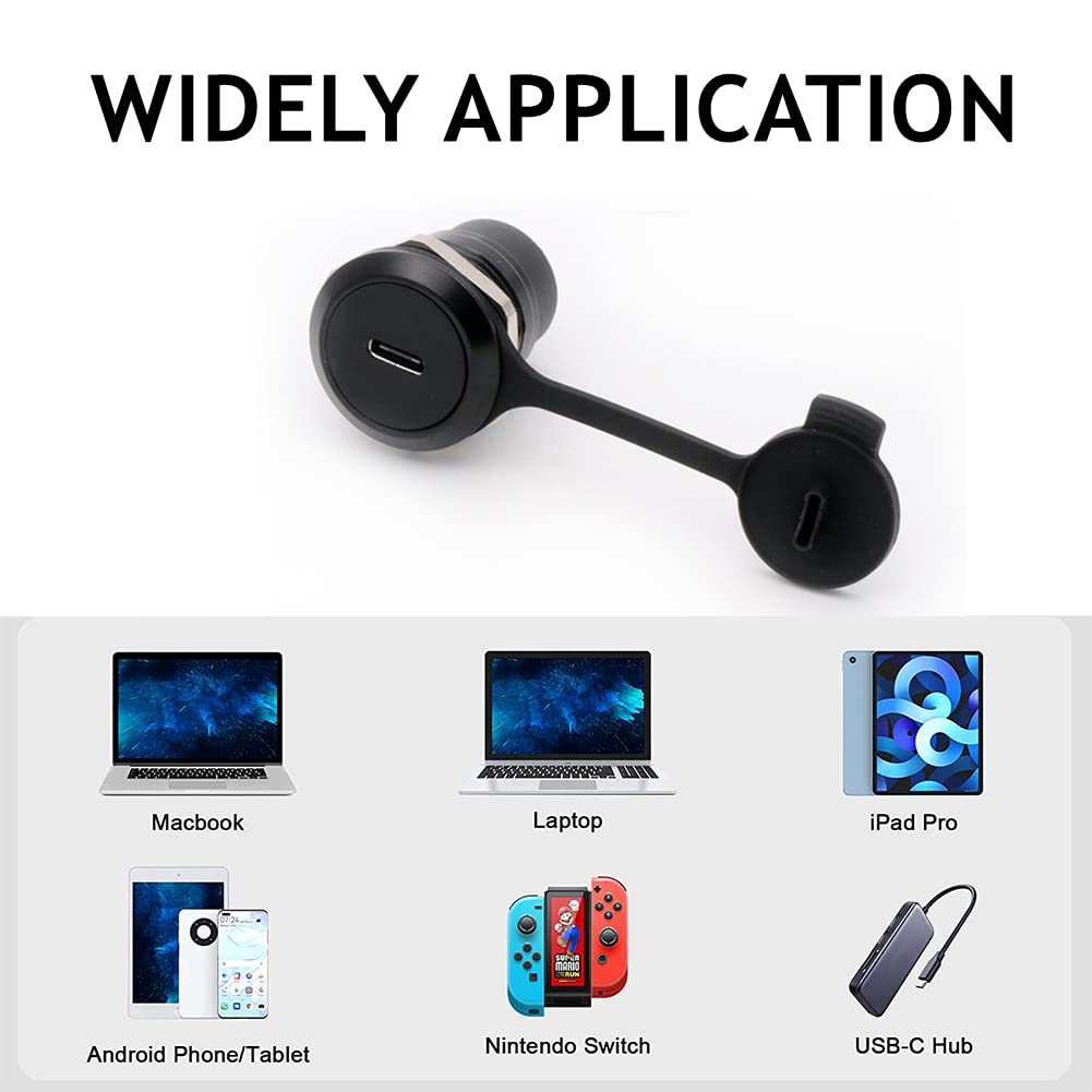 The Usb 3.1 Female Converter Connector Is A Reversible Usb 3.0 Feed Through Adapter. The Standardized Round Shape Housing Of The Adapter Fits Into Conventional Patch Panels And Offers An Additional Protection For The Connector.Widely Compatible With Laptop, Pc, Charger, Power Bank, Quest Link. Work Perfectly For Devices With Usb A Or Usb C Ports, Support All Your Phone Series. Product Feature Transmission Speed Range: 5Gbps Contact Resistance: 0.5Go Rated Voltage/ Current: 50V/ 1.5A Shell Material:Aluminum Alloy Contact Material: Bronze(Cusn8) Insulator Material: Pbtp 15 % Gr Panel Thickness: 2.0-10Mm/0.08-0.39In Tips: When The Transmission Speed Is Only 30Mbps, Please Insert The Type C Data Cable In Reverse, And The Transmission Speed Will Reach The Expected 5Gbps. Package Included: 2X Type C Connector 2X Waterproof/Dust Cap Cover