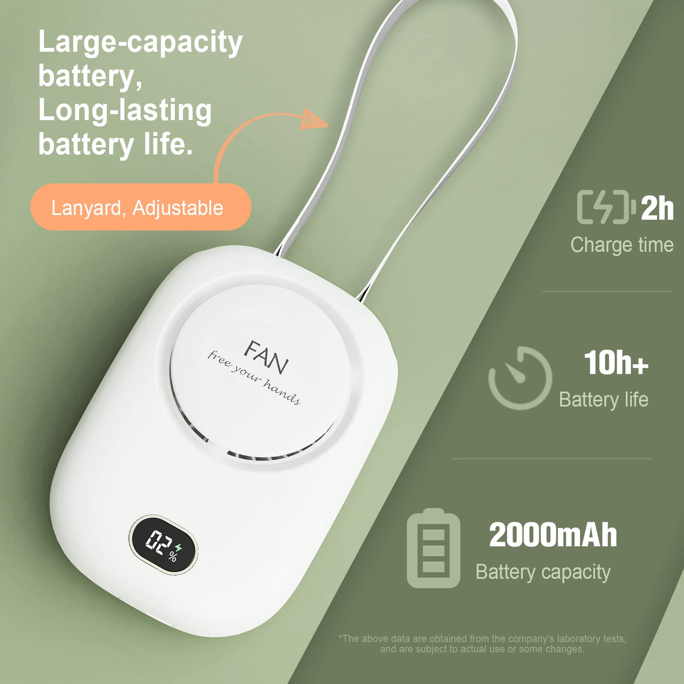 ??Intimate Design - Hands-Free: The Hands-Free Design Of The Portable Neck Fan Can Free Your Hands.You Can Use This Portable Fan Keep Cool At Home, On The Go, While Hiking, Camping Or Fishing. It'S Like Your Own Personal Wearable Neck Air Conditioner. | ??Quick Charge: With A 2000Mah High Battery Capacity, These Personal Mini Fans For Your Neck Can Run Up To 10 Hours With Charging For 2 Hours. | ??Flexible & Adjustable: The Flexible Strap Allows You To Adjust These Portable Usb Rechargeable Fans For Adults & Kids. Simply Place The Fan Around Your Neck And Adjust It To Comfort. | ??Function: This Mini Portable Neck Fan Is Available With 01 / 02 / 03 Speed Levels To Meet Your Individual Needs When You Press The Button. ''Lo'' Stands For Low Battery, ''100%'' Stands For Full Charge. | ??Low Noise Design & Fashion: The Hanging Neck Fan'S Motor Has Been Modified So That Noises Of 20-30 Db Can Be Generated While Running. It Doesn'T Affect Sleep Or Mood. Simple Appearance And Fresh Color Matching Makes It Look Fashionable.