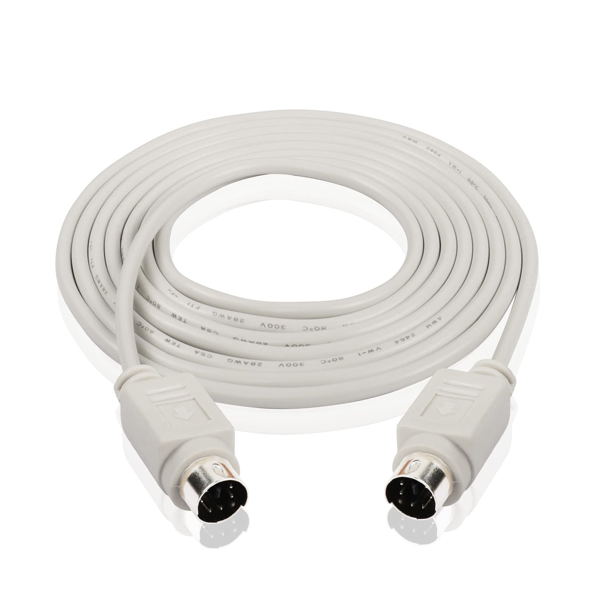 1. Product Name: Ps/2 Mdin-6 Male To Male Cable. 2. Cable Length: 260Cm/8.5 Feet. 3. Wire Gauge:28Awg. 4. Connector 1:Ps2 Male Plug. 5. Connector 2:Ps2 Male Plug. . 6. Color: Beige. 7. Packing Quantity: 1Xps/2 Mdin-6 Male To Male Cable