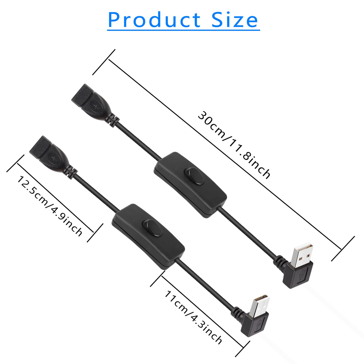 Pngknyocn Usb Short Cable With On/Off Switch,2 Pack 1Ft 90 Degree Up & Down Angle Upgraded Usb A 2.0 Male To Female Data Power Switch Cable