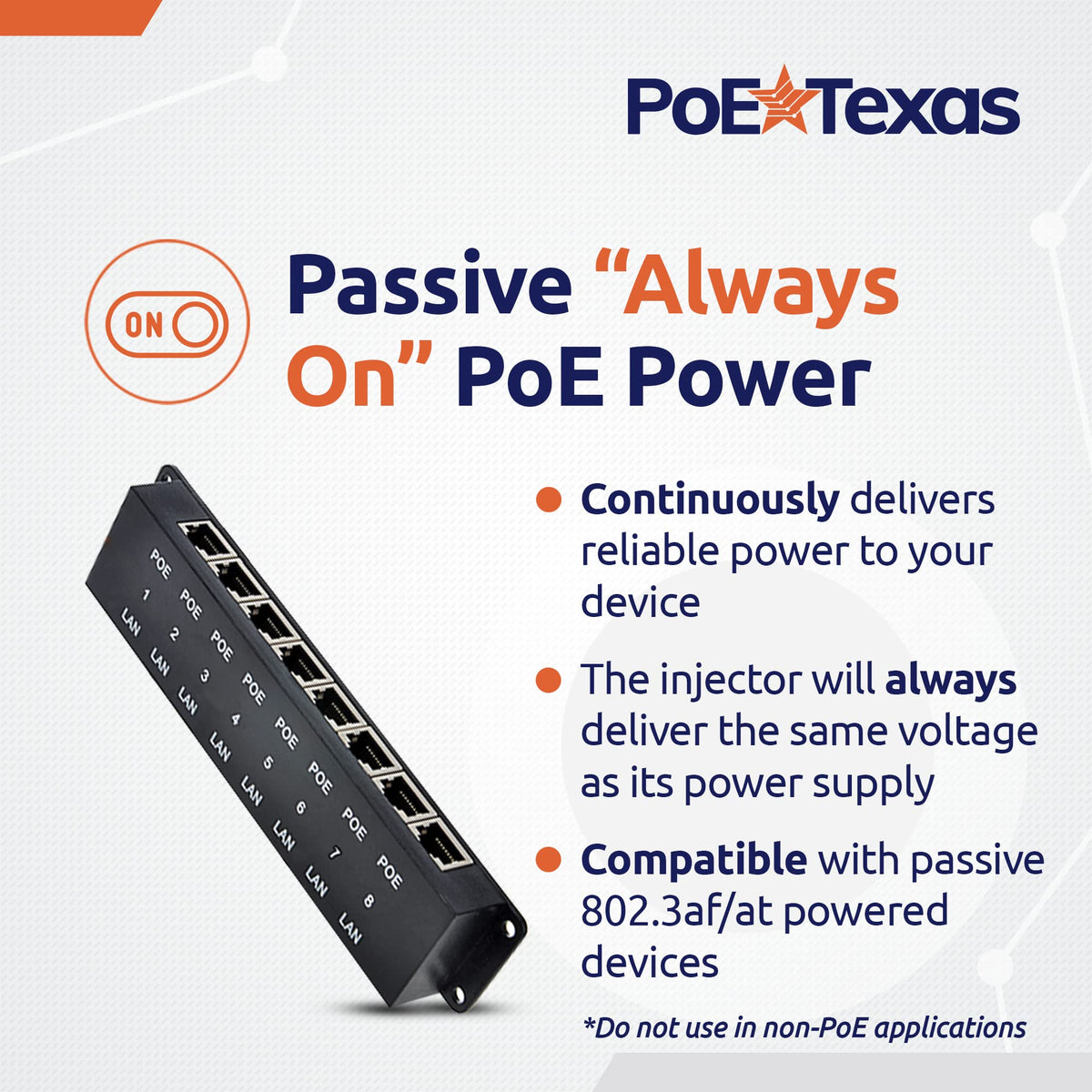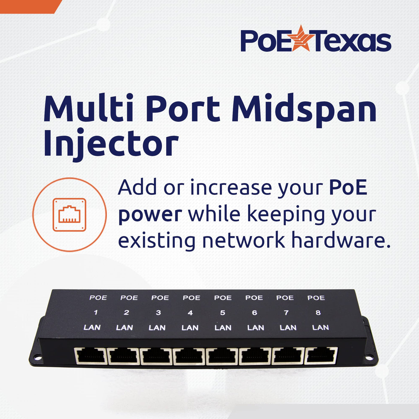 Poe Texas 8 Port Poe Injector 8 Port Poe Adapter Add Power Over Ethernet For Passive Devices 10/100 Data Rate For Ptz, Ip Camera Video Security System, Voip Phone, Wifi Access Point (Poe 8 Enc)