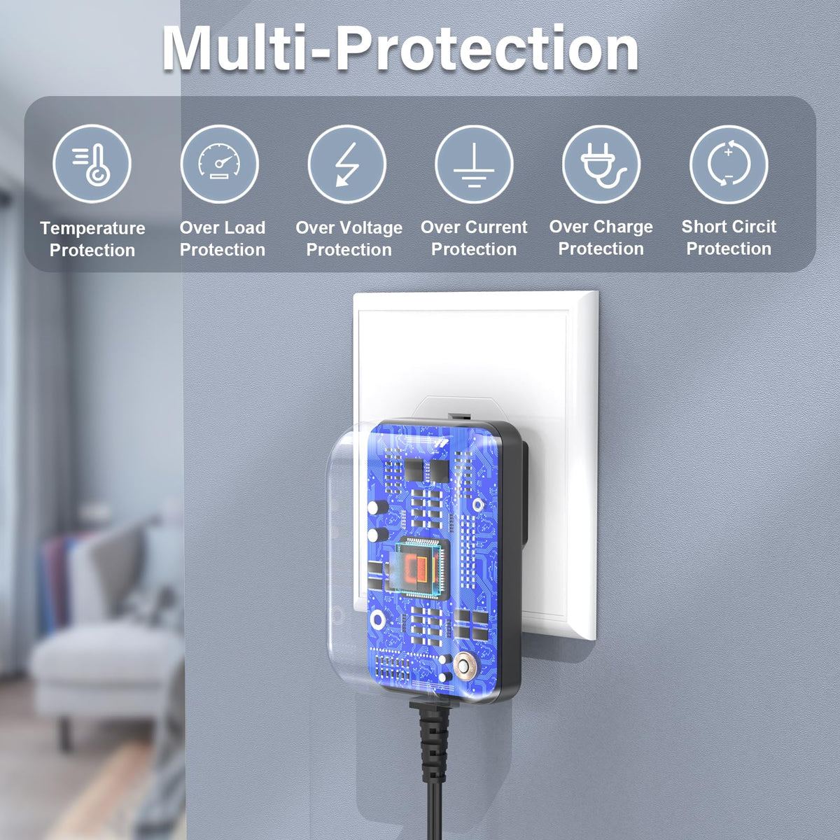 Q: What safety features does the power adapter include?A: The power adapter includes built-in protections against short circuits, overcurrent, overvoltage, and overheating, ensuring safe charging for your MelodySusie drill.