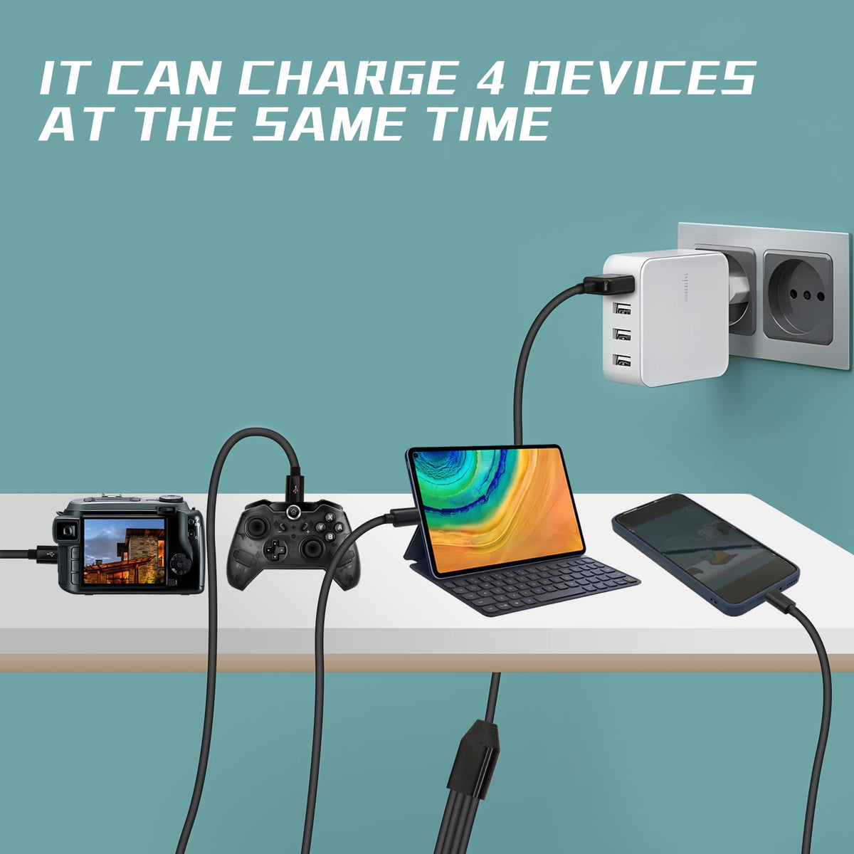 Q: Can I charge multiple devices at the same time with this cable?A: Yes, the QIANRENON 4 in 1 Micro USB B Data Cable features a unique one-to-four design, allowing you to charge up to four devices simultaneously. This is perfect for customers who need to charge multiple micro-USB devices without waiting.