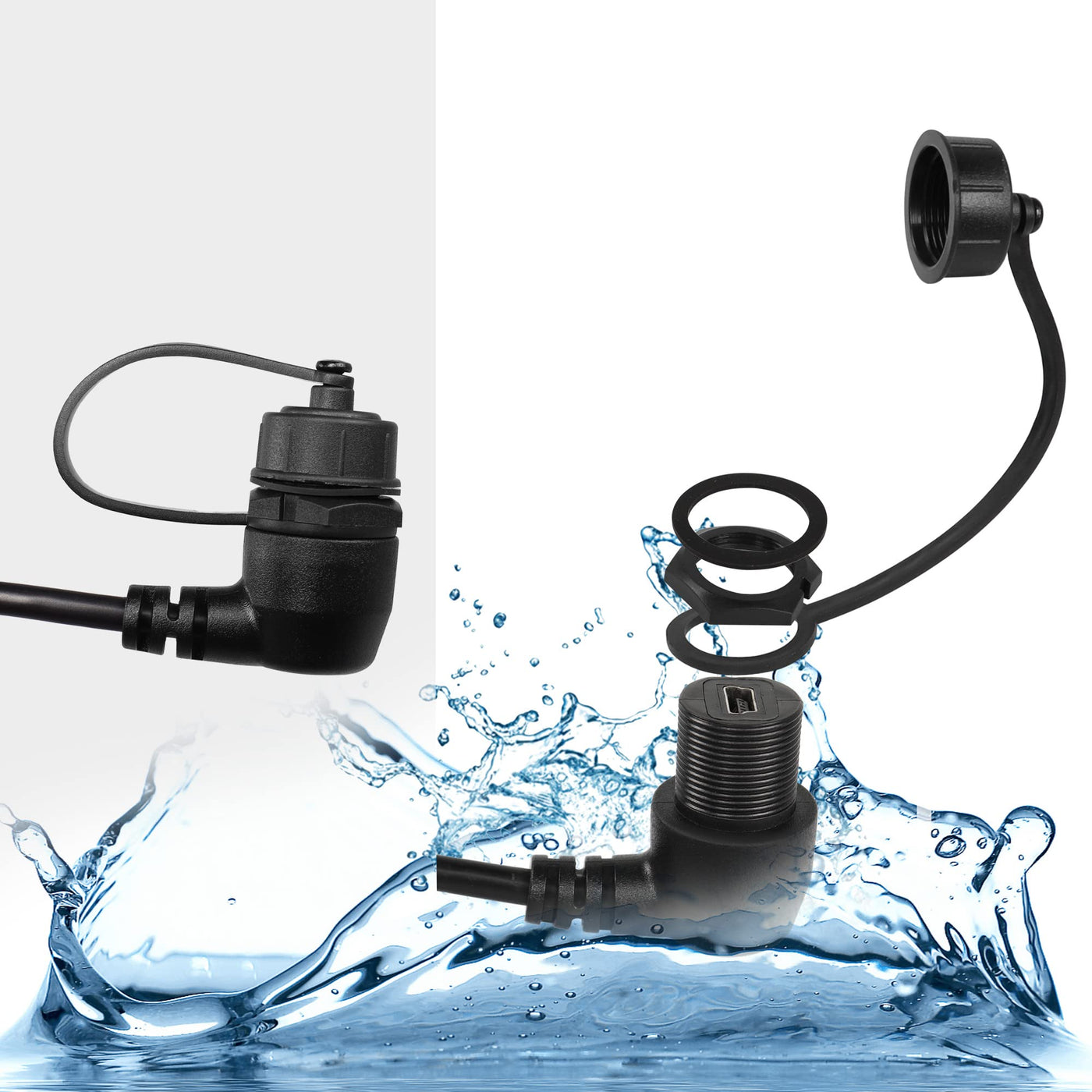 Mini Usb Round Flush Mount Cable, For Mounting On Dashboards And Electronic Equipment Operating Panels Of Cars, Trucks, Motorcycles, Boats, Yachts And More. The Mini Usb Male To Female Panel Mount Extension Cable Comes With A Waterproof Kit And Fastening Nut For Easy Installation And Does Not Take Up Much Space. The Thread Specification Is M15 1 Fine Tooth, Only A F16Mm Hole Needs To Be Cut In The Dashboard, And The Installation Is Fixed By The Nut To Realize The Extension Of The Extended Mini Usb Port.&Nbsp; Interface A: Mini Usb Male&Nbsp; Interface B:&Nbsp; Mini Usb Female Thread Specification: M15 1 Length: 28Cm/11In Colour: Black&Nbsp; &Nbsp; &Nbsp; &Nbsp; &Nbsp; &Nbsp; &Nbsp; &Nbsp; &Nbsp; &Nbsp; &Nbsp; &Nbsp; &Nbsp; &Nbsp; &Nbsp; &Nbsp; &Nbsp; &Nbsp;&Nbsp; Package: 1 Mini Usb Right Bend Male To Right Angle Female Cable, 1 Hex Nut, 1 Washer, 1 Waterproof Cover