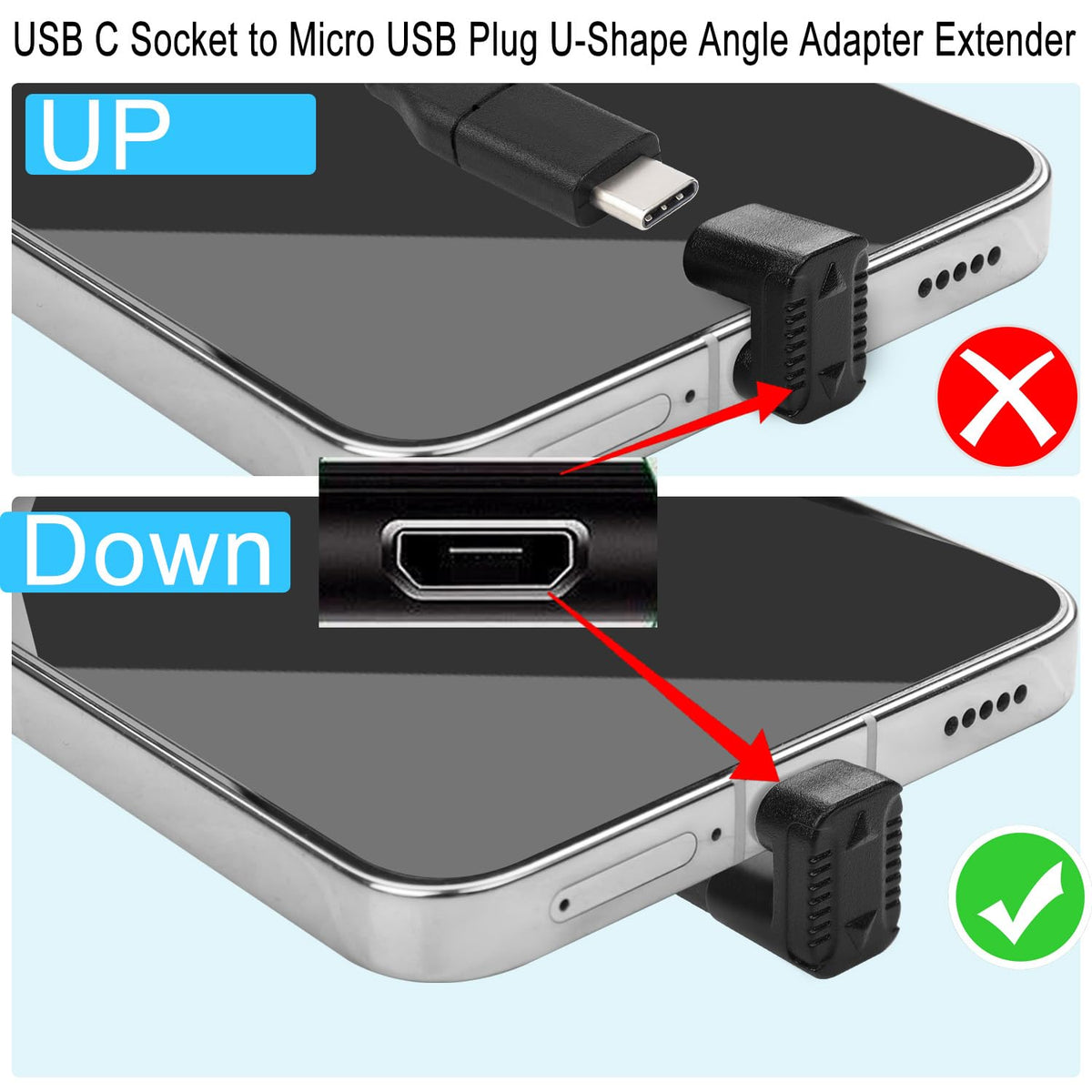 Qianrenon Usb C To Micro Usb Charging Data U Shaped Connector Usb C Female To Micro Usb Male 180 Degree Angle Down Adapter Plug